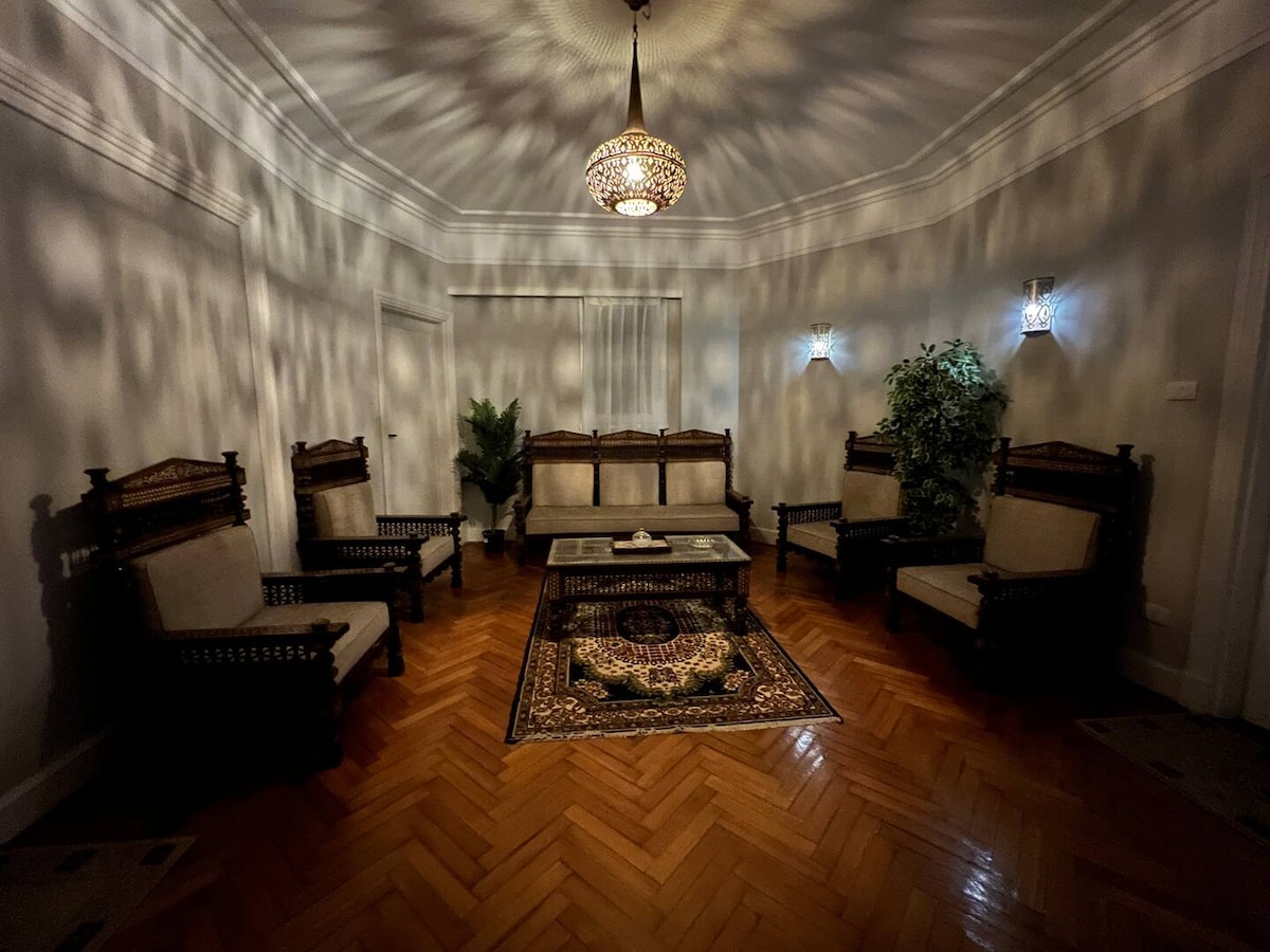 Bain sult as d'fhanacht aoibhinn i gcroílár lár Cairo, le Suíomh nach féidir a shárú díreach ar shiúl ó Mheitreo Cairo agus ó Chearnóg íocónach Tahrir. Tum thú féin i stair agus i gcultúr saibhir na cathrach agus tú ag baint taitnimh as an áisiúlacht a bhaineann le hiompar éasca agus iniúchadh a dhéanamh ar nithe is díol spéise in aice láimhe. Tá do thearmann Airbnb iontach ag fanacht leat, ag tairiscint meascán foirfe de chompord, áisiúlacht agus eispéiris dhodhearmadta i gcroílár Cairo