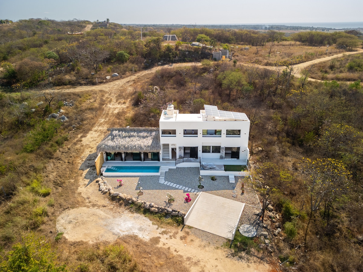 Aimsigh tearmann brionglóide in Playa Tierra Blanca, áit a bhfuil ár gcábán príobháideach ar snámh thar linn snámha shuaimhneach, timpeallaithe ag an dúlra. Díreach 25 nóiméad ó Puerto Escondido agus 45 ó Mazunte, bain sult as sunsets draíochta ó do ardán. Le leaba rímhéide, tá Acomoda 3 iontach do lánúineacha nó do theaghlaigh atá ag iarraidh cuimhní cinn a chruthú. Tugann an chistin agus an t - aerchóiriú feistithe compord duit. Níl ann ach cúpla céim ón trá atá beagnach tréigthe, anseo tá an tsíocháin agus an eachtra fite fuaite le chéile. Tá do pharthas ag fanacht leat