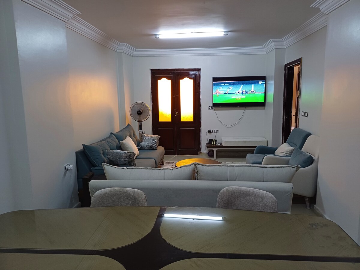 Unique Studio in Nasr City is centraly located to many areas in Cairo (Down Town , Tourism areas , Cairo stadium & Exhibition) .. The location of the apartment is safe .. It accommodates up to 5 guests maximum .. It contains a living room, 2 bedrooms (4 single beds & sofa bed) , a kitchen and a bathroom It's a well-equipped & fully airconditioned .. High_speed Wi Fi is available & free of charge and covers all the apartment .. Car parking is available .. I look forward to hosting you ..