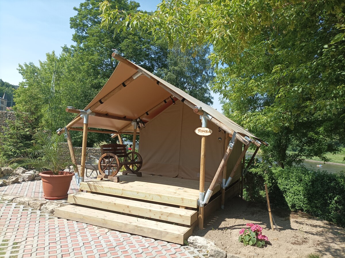 Cuireann suíomh uathúil an lóistín i ngleann Labské údolí idir Děčín agus Hřensko roinnt turas chuig an timpeallacht ar fáil. Bain sult as fuaimeanna an dúlra nuair a fhanann tú san áit seo. Freastalóimid ort i bpuball fairsing ina bhfuil cistin bheag, ina gcodladh do 4 dhuine ar a mhéad, suíocháin laistigh agus lasmuigh. Cuimsíonn an lóistín chan (folcadán iarainn teilgthe le teallach do 4 dhuine), cithfholcadán gréine, teallach le haghaidh rósta agus greadadh (adhmad san áireamh).