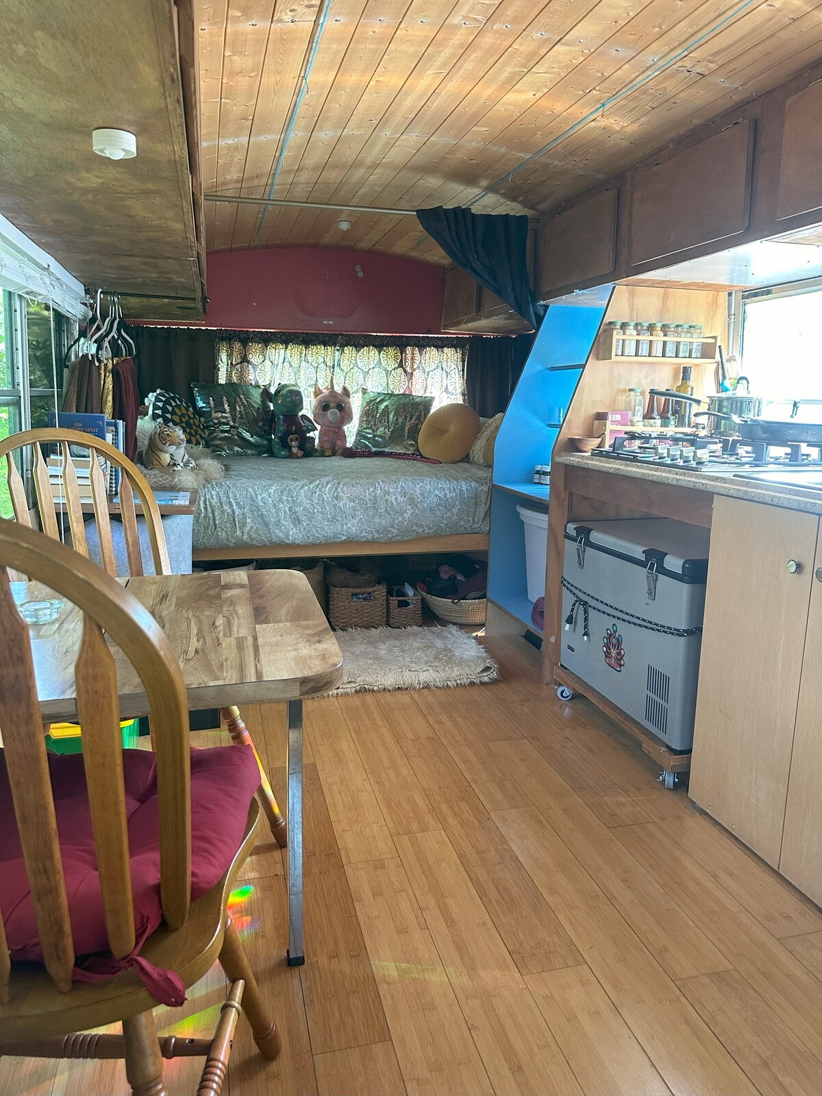 Neadaithe ar 4 acra agus suite i gcroílár limistéar caitheamh aimsire Waterloo, tá compord agus fuinneamh eicléictiúil sa skoolie 280sq seo! Cinnte, le do thoil, an díograiseoir lasmuigh, tá an réadmhaoin timpeallaithe ag talamh poiblí leis an gcrosaire Pinckney Waterloo Trail ag deireadh ár gcabhsa, agus roinnt lochanna in aice láimhe. Suite 30 nóiméad go dtí Ann Arbor, 15 nóiméad go lár Chelsea a chuireann neart bia agus deochanna iontacha ar fáil, 20 nóiméad go Downtown Jackson, 10 nóiméad go dtí fíonlann craein Sandhill.