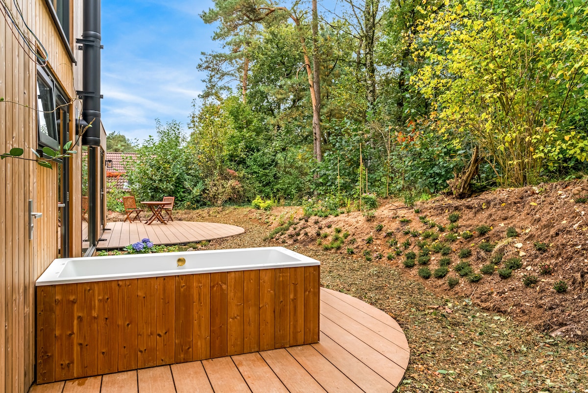 Folláine sómasach ar imeall na foraoise ar an Veluwe. Lóistín uathúil dhá dhuine le húsáid phríobháideach eisiach den linn snámha faoi dhíon, cithfholcadáin, seomra folctha príobháideach agus sabhna (Fionlannach). Bealach isteach príobháideach agus cistin lánfheistithe i ngairdín cosúil le páirc. Ní cheadaítear ainmhithe! Tá an foirgneamh comhdhéanta den chuid is mó de ghloine (scáthánaithe go páirteach) agus níl aon cuirtíní ann. Is féidir dul ar rothar go dtí Hoge Veluwe, stáisiún Apeldoorn agus Paleis het Loo. Suíomh foirfe do rothaíocht sléibhe, reatha agus turais rothar.