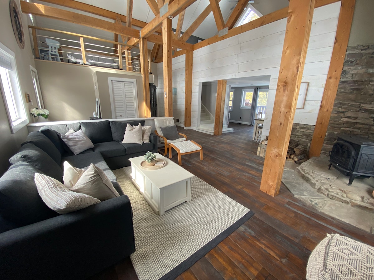Fáilte go dtí ár bhfolach 3 sheomra leapa - do cheap lainseála le haghaidh spraoi agus scíthe! Níl an eachtraíocht riamh i bhfad uait, ach cúpla céim ó chosáin, lochanna, áiteanna iascaireachta, cnoic sciála, galfchúrsa Stone Ridge, tránna agus bia blasta. Níos mó isteach i mód fuaraigh? Marshmallows rósta ag an tine chúlchlós nó tús ar ais faoi na réaltaí. Neadaithe ar chorrán ciúin i gcroílár an bhaile, tá sé ar an gcuid is fearr den dá shaol: sult sa lá, vibes teolaí san oíche. Tabhair leat do chriú agus déan cuimhní cinn - beidh dúil mhór agat anseo!
