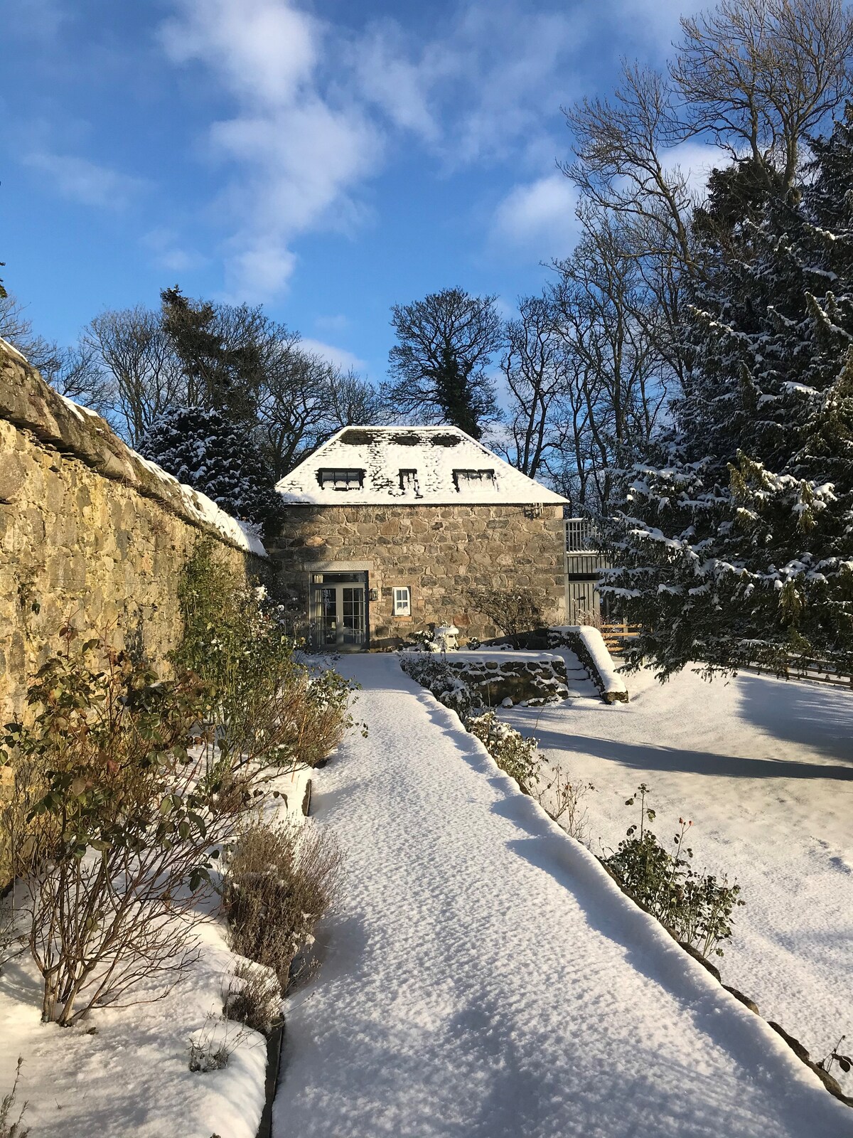 Bothán álainn 200 bliain d'aois atá suite in Oirthuaisceart na hAlban, a bhfuil cosúlacht aige, dar le daoine, leis an teachín ón scannán "The Holiday". Suite i gceantar ciúin iargúlta de Pitmedden, ar a dtugtar Old Seaton Village. Is féidir linn seirbhísí tointeála a chur ar fáil chuig saoráidí a bhfuil tóir orthu in aice láimhe - fógra roimh ré ag teastáil. Tá fáilte roimh mhadraí a bhfuil dea-iompar acu ach ní cheadaítear iad ar an troscán. Ní mór madraí a choinneáil ar luaidhe laistigh de thailte na réadmhaoine agus den cheantar máguaird agus ní féidir iad a fhágáil gan duine ina mbun.