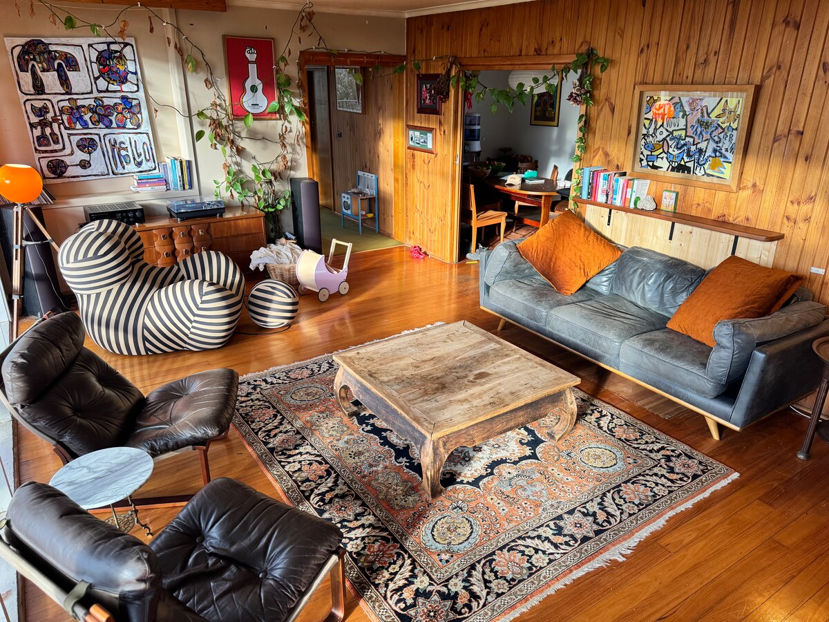 Fan inár dteach álainn deartha B&G Cole atá neadaithe i réigiún fíona boutique Artisan Hills. Táimid lonnaithe i gceantar Research/Eltham/Warrandyte ar imeall uirbeach Melbourne. Bainfidh tú taitneamh as lóistín iomlán príobháideach agus suaimhneach le tolglann/seomra siamsaíochta mór, seomra folctha agus cistin gourmet. Beidh gliondar ar phaitió lasmuigh ina bhfuil suíocháin agus radhairc iontacha ar an tor. Fiadhúlra fairsing ar fud agus gan ach 26km go Melbourne. Tá Montsalvat, Yarra Valley agus Margadh Chill Rímhinn in aice láimhe.