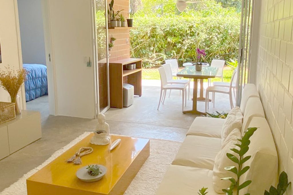 Teach 100 méadar ó thrá Jureia le gairdín mór álainn. Tá an teach úr an - chompordach agus tá luas idirlín snáithín 400mbps ann. Le dhá sheomra mar an gcéanna, tá an teach feistithe go hiomlán chun go mothóidh tú in óstán ina bhfuil an tsaoirse agus an phríobháideacht go léir ar fud an domhain. Le balcóin limistéar gourmet le casóg, táblaí, cathaoireacha tá grianlann againn freisin le beárbaiciú. Tá seomra folctha lasmuigh sa teach in aice leis an mbealach isteach le cithfholcadán lasmuigh dóibh siúd atá ag teacht ar ais ón trá! Garáiste 4 charr