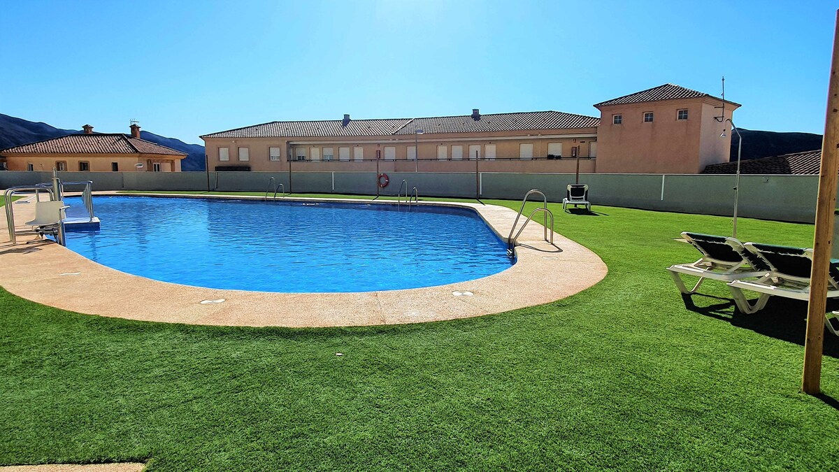 Árasán iontach chun taitneamh a bhaint as cúpla lá scíthe agus scíthe in aice le Cabo de Gata agus a thránna. In aice leis an ngalfchúrsa agus siúlóid ghearr ón trá. Sunbathe ar cheann de dhá ardán/gairdín an tí. Tá dhá sheomra leapa ann, an príomhcheann ina bhfuil seomra folctha, cistin lánfheistithe, agus seomra suí ina bhfuil rochtain dhíreach ar an ngairdín. Faigh rochtain ar an linn snámha phobail go díreach ón bpríomh - ardán/gairdín. Spás páirceála príobháideach. 600mb snáithín Wi - Fi, NETFLIX, aerchóiriú.