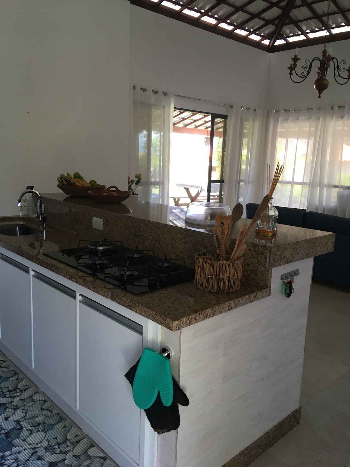Maisiúchán tuathúil compordach. Tá linn snámha sa teach, tá sé aeráilte go maith agus tá sé tuathúil. Tá aerchóiriú sa phríomhsheomra leapa, leaba luascáin ar na balcóiní agus sa seomra suí, faiche, cithfholcadán sa ghairdín, gríoscán beárbaiciú, agus tá an réadmhaoin fálaithe go hiomlán, ionas gur féidir leat do pheata a thabhairt leat. Is suíomh den scoth é mar gheall ar an tost agus ar an suaimhneas... dóibh siúd atá ag lorg síochána, suaimhnis agus meas ar an dúlra. Tá an teach ar chúinne agus tá sé suite sa sráidbhaile, sa cheantar is fearr de Massarandupió, áit a bhfuil na siopaí grósaera, na bialanna agus an bácús suite.