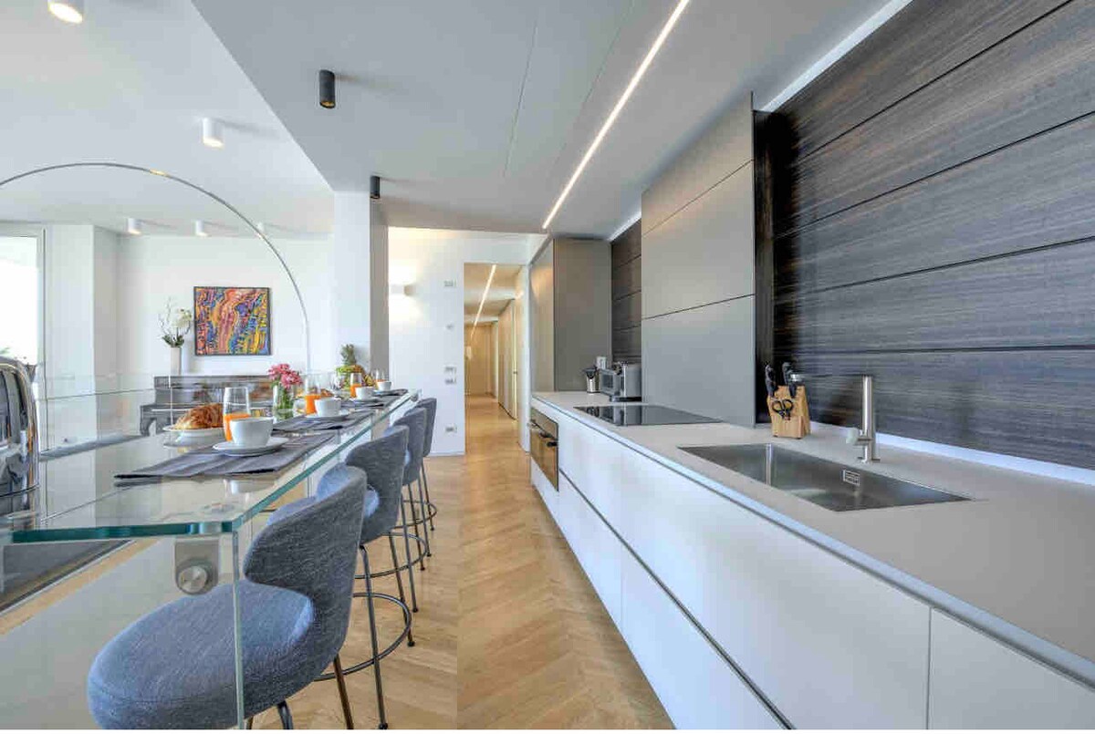 Tá sé in am taitneamh a bhaint as eispéireas dodhearmadta sa villa gleoite Art Nouveau seo ó 1927 atá suite gar do na ballaí meánaoiseacha. Tá an t-árlas suite siúlóid ghearr ó Dhroichead Pietra (400 méadar), ón Amharclann Rómhánach, ón Duomo, ó Leabharlann Capitular agus ó eaglaisí San Stefano agus San Giorgio. Beidh radharc iontach agat ar Chaisleán Sant'Angelo. Tá an t-árasán foirfe dóibh siúd ar mian leo taitneamh a bhaint as an gcathair i dtimpeallacht shuaimhneach agus iad gar don lár stairiúil freisin. @veronaluxuryapartment