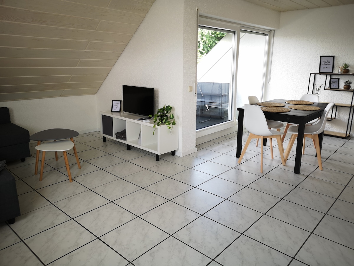 Cibé acu coinne gnó, cuairt ar an aonach trádála nó saoire ghearr ag Loch Constance álainn - tá ár n - árasán ardchaighdeáin foirfe do gach ócáid. Chomh maith le seomra suí álainn agus seomra folctha nua - aimseartha, tá ionad oibre ar leith, raca bagáiste agus balcóin iontach le suíocháin ann freisin. Inrochtana go tapa: aerfort/ aerfort 5 km Messe/ aonach 4 km Siopa Auntie (le bácús) 500m Bialann (bourgeois - Iodáilis) 500 m - 2 km Níos mó laistigh de 5 km ga