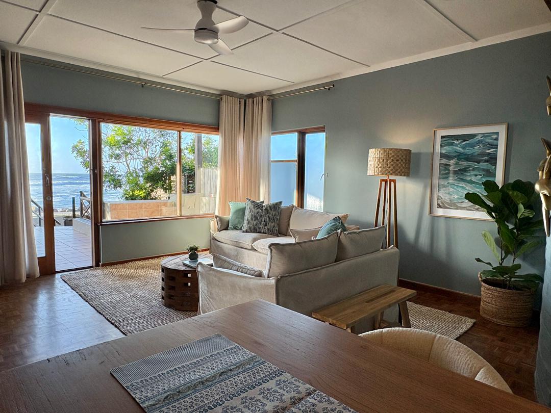 Bíodh an saol cósta den scoth agat sa tearmann sofaisticiúil seo ina bhfuil trí sheomra leapa. Deartha le haghaidh sreabhadh réidh idir an taobh istigh agus an taobh amuigh, tá cistin fhairsing le plean oscailte agus dhá áit chónaithe sa teach, chomh maith le braai laistigh agus teallach cluthar do thráthnóna fionnuara an Atlantaigh. Seo é do theach saoire ar shiúl ón mbaile.