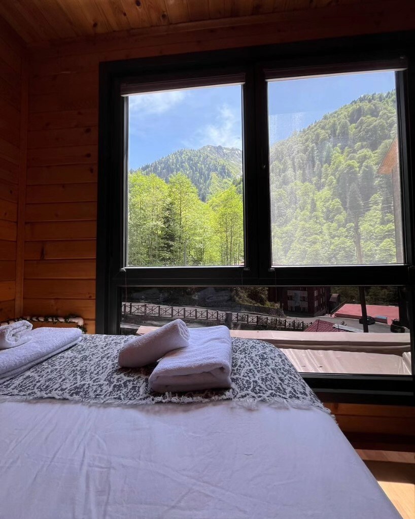Sa lóistín síochánta seo, is féidir leat do scíth a ligean mar theaghlach agus taitneamh a bhaint as an radharc iontach ar an ardán breathnóireachta, a leithroinnfear ort. Cuireann ár dteach ardleibhéal príobháideachta ar fáil a bhuí lena struchtúr iargúlta. Tá sé suite i gceartlár chúigí Trabzon agus Rize. Ar an mbealach seo, is féidir leat rochtain a fháil go héasca ar shuíomhanna turasóireachta amhail Uzun Lake, Sümela Monastery, Ayder Plateau, Santa Ruins, Fırtına Creek agus Sultan Murat Plateau ónár dteach.