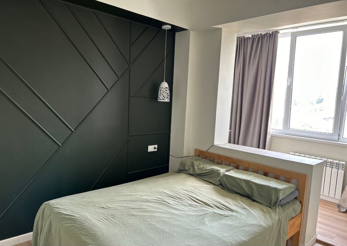 Cuirimid árasán teolaí, glan, fairsing 2 sheomra ar fáil d'aíonna chathair Almaty le hathchóiriú nua. Tá an t - árasán siúlóid ghearr ón aerfort(50 m). Tá na saoráidí bunúsacha bunúsacha bunúsacha go léir ann do do Ullmhóimid an t - árasán go cúramach do do theacht, cuirfimid braillíní agus tuáillí glana úra ar fáil duit.