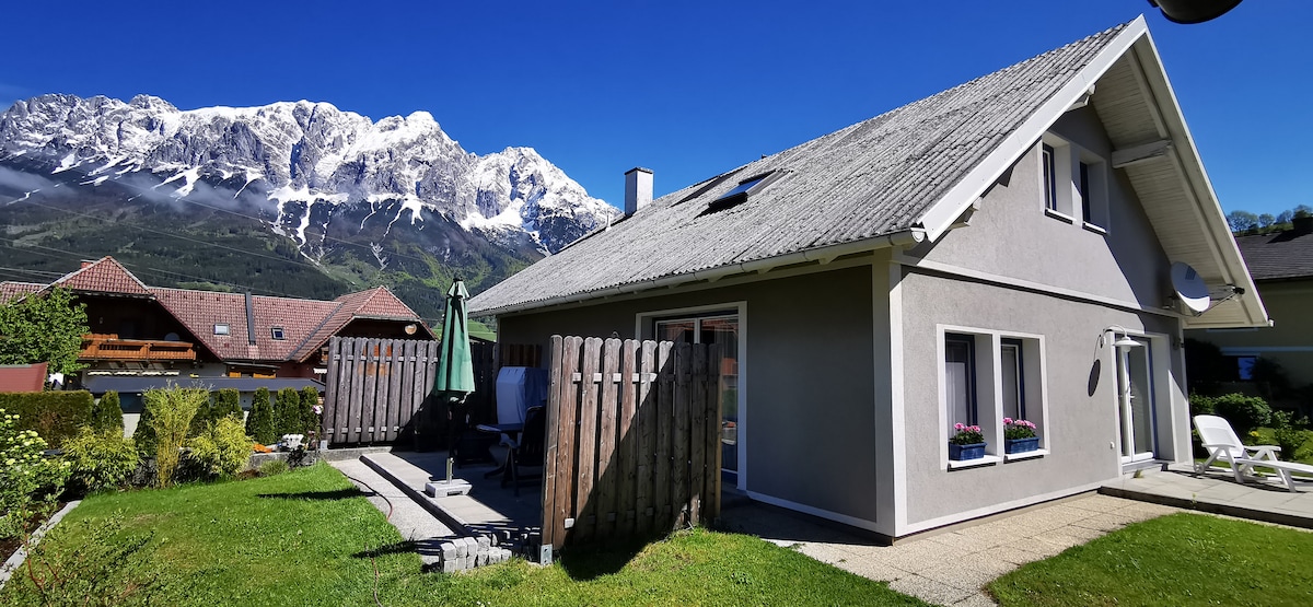 Tá an t - árasán fairsing le balcóin mhór atá os comhair an iarthair mar chuid de theach álainn taobh tíre i suíomh fíor - chiúin i gcroílár an tsléibhe phictiúrtha agus an réigiúin sciála Dachstein - Sladming. Neart turais siúil agus fiú rogha mullaigh (Gumpeneck 2226m) ag tosú ag an teach. Ná tiomáin ach 18 nóiméad chuig na 4 fhánaí sléibhte idirnasctha (123km) Dachstein. Páiste cairdiúil, faiche. Páirceáil lasmuigh. Linn snámha aeir oscailte, bácús, ollmhargadh, both agus stáisiún traenach laistigh d'achar siúil.