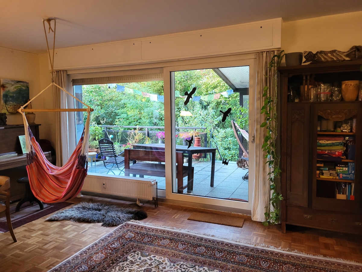 An t - árasán nua (lena n - áirítear sep. Bealach isteach) Tá an bia i gcroílár na comharsanachta is áille: Werden. Is féidir leat a bheith ag súil leis: Seomra mór galánta cistine lena n - áirítear. Tábla itheacháin agus tolg teolaí i ngrianán grianmhar (radhairc ar an tuath). Seomra leapa fairsing le leaba mhór dhúbailte agus vardrús ionsuite. Halla geal agus seomra folctha galánta ina bhfuil cithfholcadán/láthair suí báistí. Ina theannta sin: parquet/tíleanna nua, Wi - Fi, línéadach leapa, tuáillí, meaisín espresso agus fad siúil chuig caiféanna, bialanna, Baldeneysee 2 nóiméad.