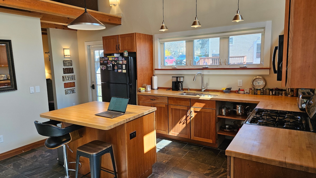 Fáilte chuig an Scioból Carráiste. Coinnigh simplí é ag an árasán sciobóil lochta síochánta seo atá suite go lárnach. Lig do scíth i suíomh cuíosach Vermont gar don fhánaíocht, don sciáil, don rothaíocht, do Burlington & do gach rud atá le tairiscint ag Vermont gach séasúr. Is féidir leis an árasán lochta suas le 4 a chodladh & is coincheap oscailte dhá scéal é ina bhfuil folcadán/cithfholcadán iomlán agus vardrús siúil isteach. Páirceáil & gar do mhargaí, siopadóireacht, bialanna, cosán rothar, clós súgartha. Tóg cithfholcadán inár gcithfholcadán céadair lasmuigh nó lig do scíth inár spás do chlós comhroinnte