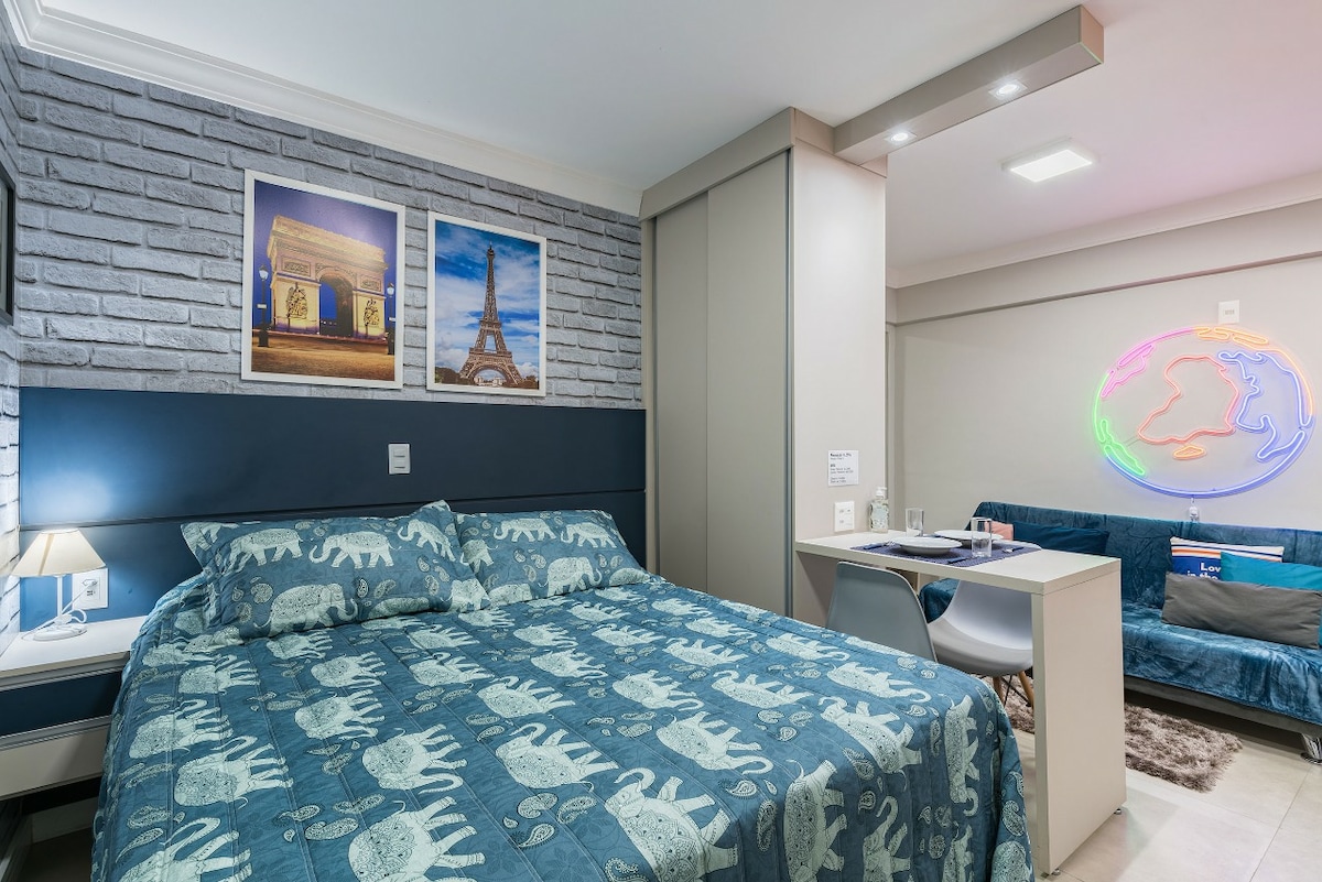 Is áit iontach é Lar Doce Lar 425, atá suite i bpobal geataithe São Roque - SP! Le seomra leapa dúbailte, cistin iomlán, seomra folctha agus seomra suí, is é seo an áit le fanacht sa chathair álainn turasóireachta seo! Déanfaimid ár ndícheall eispéireas uathúil a bheith againn trí fhanacht inár n - áit chónaithe 5 nóiméad ó lár an bhaile nó ó Bhealach Fíona! (Níl gnéithe inrochtaineachta againn i láthair na huaire agus tá staighre san óstáil).
