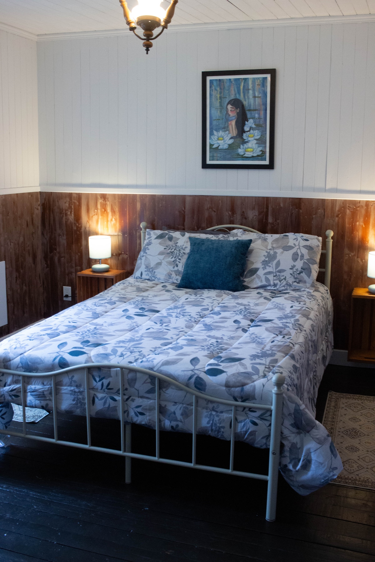 Tá ceithre sheomra againn san iomlán, agus tá dhá cheann acu ensuite lena n - áirítear cithfholcadán agus dhá sheomra a bhfuil seomraí níocháin iontacha comhroinnte acu le haghaidh cithfholcadáin. Is áit chompordach é ár dteach oidhreachta gleoite le fanacht ina bhfuil seomraí suimiúla atá lán le healaín. Tá éadaí leapa don gheansaí cadáis dearthóra inár seomraí go léir (Anois tá sé sin bog!). Táimid suite i gcroílár Mansonville díreach in aice leis an Round Barn stairiúil.