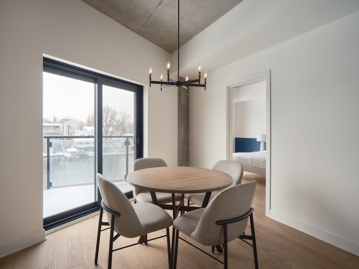 Déan iniúchadh ar lochta XXL 1900 sq ft atá suite i lár bhaile Sherbrooke. Tá an spás mór, geal agus deartha le haghaidh compoird: leaba rí, cistin mhór nua-aimseartha, teilifís 75″, spás oibre, Wi-Fi tapa agus páirceáil saor in aisce. Cibé acu an bhfuil tú ag teacht le haghaidh fanacht fada, teilea-oibre nó saoire ghearr do bheirt, tá atmaisféar croíúil agus compord den scoth sa lochta seo. Tá tú laistigh d'achar siúil ó bhialanna, micreaghrúdlanna, caiféanna agus ionaid chultúrtha i lár na cathrach. (CITQ 307283)