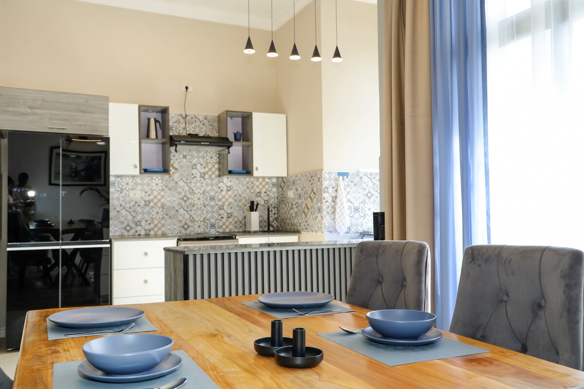 Árasán sómasach in Addis Ababa's Hayahulet, ina bhfuil 2 sheomra leapa, 2 sheomra folctha iomlána, cistin iomlán, beár, seomra suí ina bhfuil áit oibre, páirceáil thiomnaithe, Wi - Fi, agus gineadóir cúltaca. Foirfe do thaistealaithe gnó nó do thréimhsí fanachta fada. Níl ach 10 nóiméad ón aerfort agus 5 nóiméad ón stáisiún traenach.