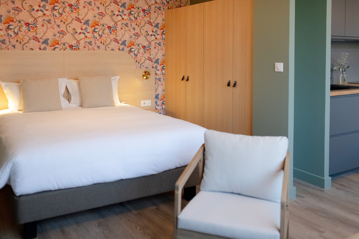 Fáilte chuig mo stiúideo gleoite 26 m2, atá suite i gcroílár chathair Eu, an Normainn. Tá an lóistín seo oiriúnach do bheirt thaistealaithe ar mian leo saibhreas stairiúil agus cultúrtha an réigiúin a aimsiú agus taitneamh a bhaint as áit fheidhmiúil ghalánta. Tar agus aimsigh, 3 km ar shiúl, aillte Le Tréport, a funicular, a thránna, Mers les Bains agus a villaí le haghaidheanna áille ildaite. Maidir le daoine a bhfuil dúil mhór acu sa dúlra, an Baie de Somme 20 nóiméad ó Eu, atá rangaithe i measc na mbánna is áille ar domhan.