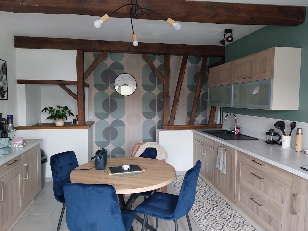Stiúideo Pleasant 27m2, trealamh Wi - Fi.Located san AE, ag acomhal na Normainne agus Picardy, i nGleann Bresle. Stiúideo gar don fharraige: 3 km Tréport (76) agus Mers les Bains (80) Ó dheas ó Cote Picarde, 7 km ó Ault, 24 km ó Bhá na Somme. Seomra folctha fairsing. Cistin lánfheistithe: oigheann, micreathonnán, cuisneoir, reoiteoir, iarta leictreach, tóstaer, cookeo. Níor cuireadh línéadach leapa agus línéadach leithris ar fáil, an fhéidearthacht cíosa. Féinchuimsitheach isteach agus amach le córas bosca eochair.