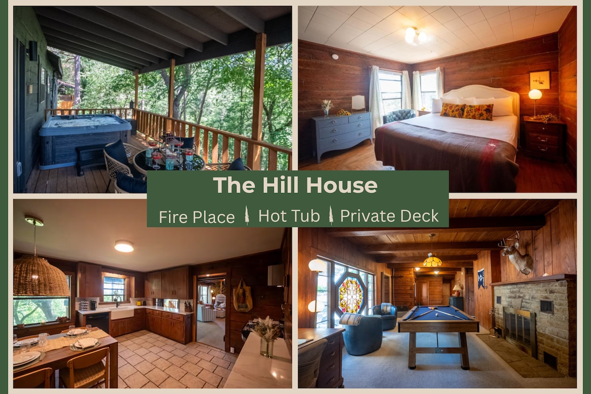 This lodge style Airbnb motel is the perfect mix of comfort, vintage style, and rustic touches. A popular stop for mountain bikers, motorcyclists, and adventure seekers! 2 mi. from HISTORIC DOWNTOWN Eureka Springs 4 mi. to Thorncrown Chapel 6 mi. to Lake Leatherwood 12 mi to Beaver Dam KEY FEATURES: ☀ Plush King-sized Bed ☀ 50” Roku TV w/HULU+ ☀ Salt Water Pool ☀ Fire Pit & Covered Pavilion ☀ Eureka Springs Trolley Stop ☀ Ziplining, Canoe & Kayak Rentals Nearby