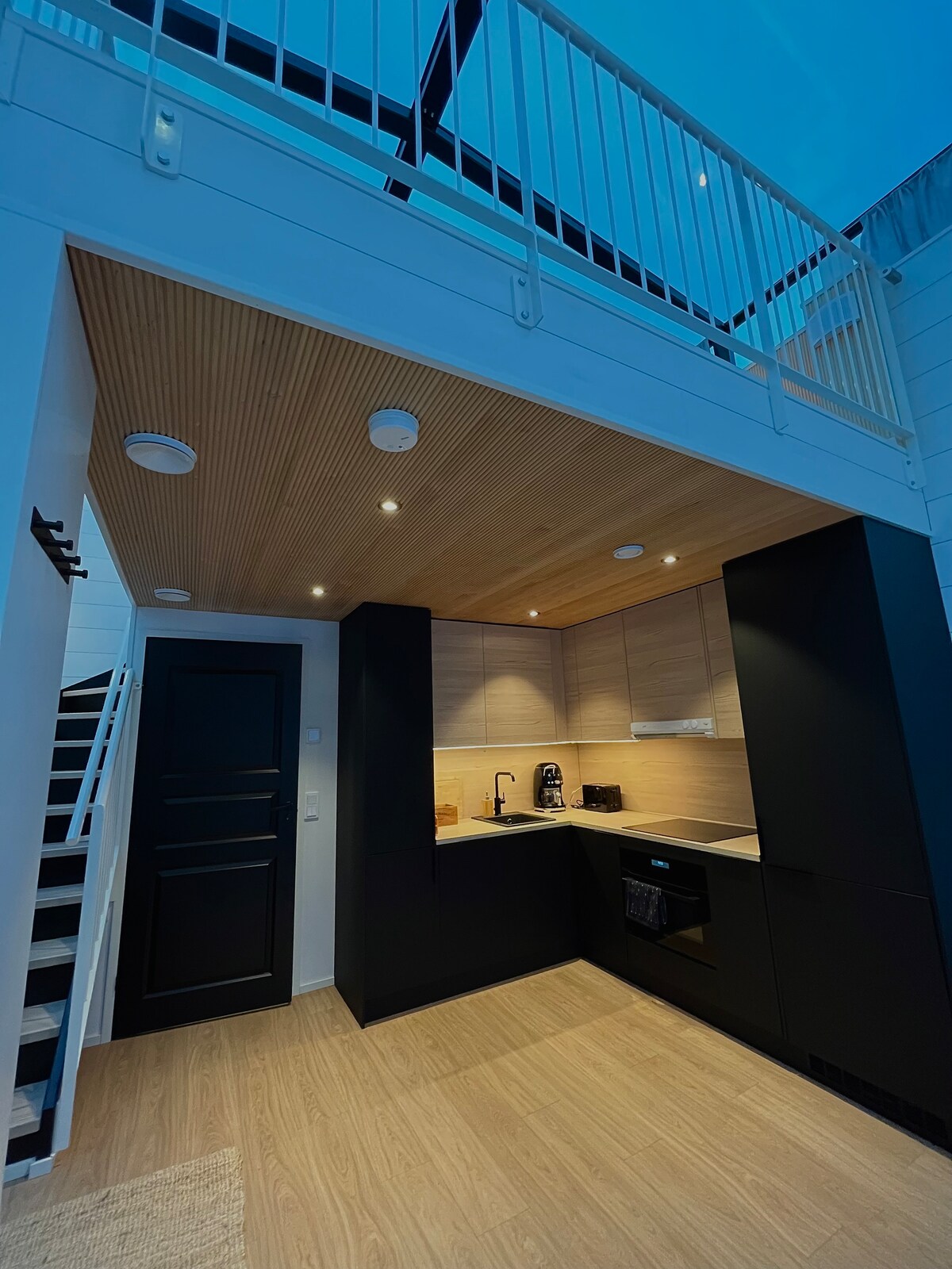 Áit uathúil ar bhruach locha a críochnaíodh in 2021. Anseo, bainfidh tú sult as an tost agus as radhairc áille i lár an dúlra. Tá soithí indiúscartha, citeal, micreathonnán, tóstaer agus mionchuisneoir ar fáil. Ní féidir ach béilí réamhdhéanta a ithe sa lóistín. 16 km go dtí an t-aerfort, 13km go dtí an siopa is gaire, 17 km go dtí lár Rovaniemi. Sa gheimhreadh is féidir leat siúl ar oighear an locha. Tá clóis na gcomharsan príobháideach. Tá bothán / áit tine ar an trá freisin atá ar fáil d'aíonna. Is féidir leat na soilse gealgháireacha a fheiceáil ar bhruach an locha reoite.