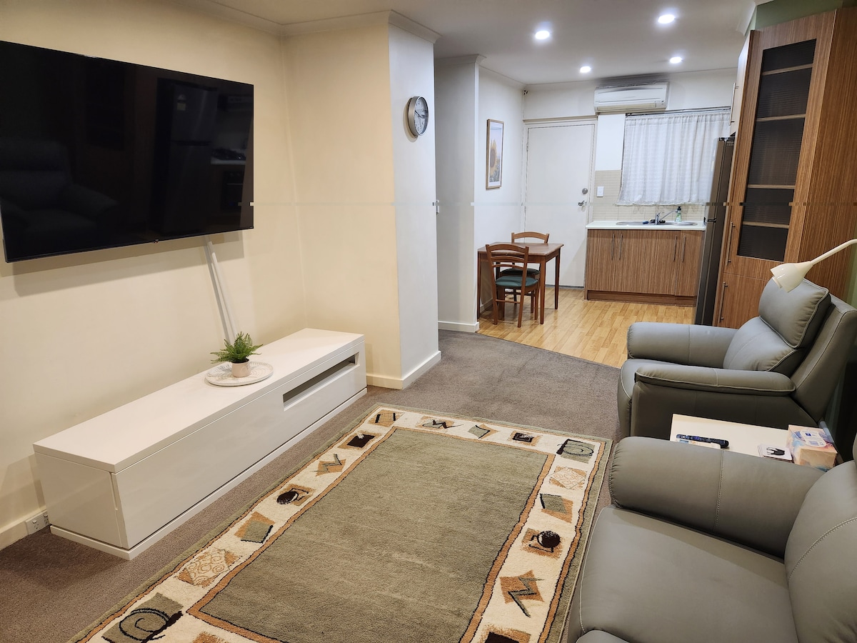 Tá dhá sheomra leapa ann go hiomlán féin, aonad seomra folctha amháin le ambience agus é úrnua ó réadmhaoine eile ag an bpointe praghais seo. In aice le tram, traein, & Margaí Feirmeoirí Dé Domhnaigh. Siúlóid ghearr chuig Ionad Snámha Unley, Capri Cinema agus caiféanna agus bialanna bríomhara Goodwood Rd. Is féidir leat a bheith sa CBD laistigh de nóiméad. Cuireann an réadmhaoin Netflix, Wi - Fi, barr cócaireachta gáis, meaisín níocháin & triomadóir, línéadach, tuáillí agus bunriachtanais ar fáil chun tú a thosú le haghaidh d'fhanachta. Pack n Play ar fáil ar iarratas.