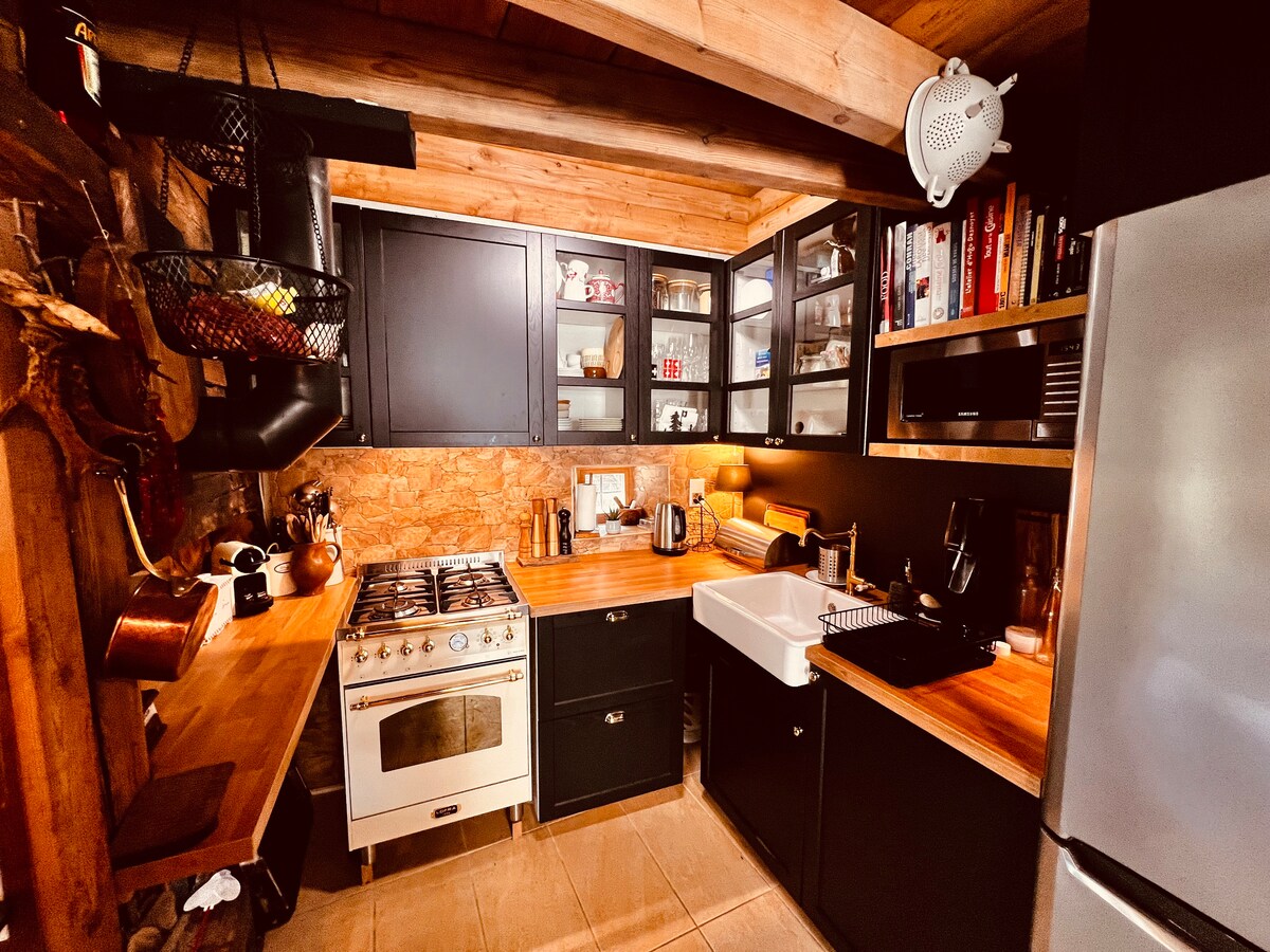 Suite os cionn na foraoise agus na habhann, tá ár dteachín geal teolaí suite i gceantar ciúin agus siúlóid ghearr ón dúlra, ón abhainn, ag tosú ó na cosáin fánaíochta agus 3 nóiméad ón tointeálaí(feidhm sa gheimhreadh) Lochta idéalach chun do scíth a ligean agus do scíth a ligean ag an teallach nó sa tobán te. Foirfe do lánúineacha. I gcás níos mó ná 2 dhuine ar iarratas. Tá 1 seomra leapa (2 dhuine) agus 1 spás oscailte amháin ann faoin mezzanine le teilifíseán agus leaba thoilg chompordach.