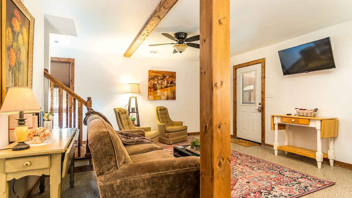 Fáilte go dtí ár dTeach Carráiste te agus príobháideach i gcroílár bhaile Brooks! Is é an tearmann te fáilteach seo an áit fhoirfe chun do scíth a ligean agus tú ag fanacht gar do gach rud. Níl sé ach cúpla nóiméad ó Senoia stairiúil agus ón ráschúrsa, agus ní fada ó Trilith, ó Ráschúrsa Hampton NASCAR, ó Peachtree City, agus ó chúrsaí gailf in aice láimhe. Beidh teaghlaigh an-sásta leis an gclós cúil ina bhfuil ziblíne agus áit súgartha do pháistí. Foirfe do shaoirí gearra, do dheireadh seachtaine rásaíochta, nó do thurais oibre—táimid thar a bheith sásta tú a óstáil!