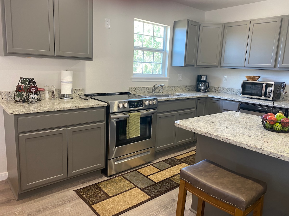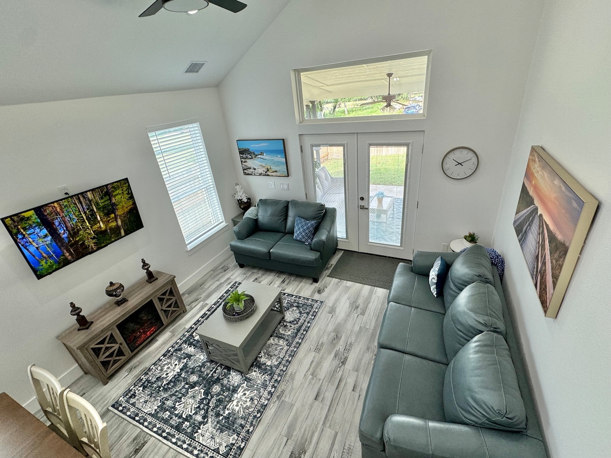 Teach aíochta tuaithe nua - aimseartha díreach 4 mhíle ó Downtown Boerne le rochtain éasca ar San Antonio agus ar Thír an Chnoic. Tógtha in 2020, tá 2 sheomra leapa fairsinge, cistin eibhir le hoileán mór, agus leagan amach coincheapa oscailte ann. Lig do scíth le teilifíseán 75" 4K nó bain sult as an bpóirse tosaigh. Téigh amach chuig linn snámha mhór chomhroinnte, suíocháin scáthaithe, agus poll dóiteáin - roinnte le teach aíochta amháin eile. Foirfe le haghaidh saoire ghearr ag an deireadh seachtaine nó le haghaidh fanacht níos faide.