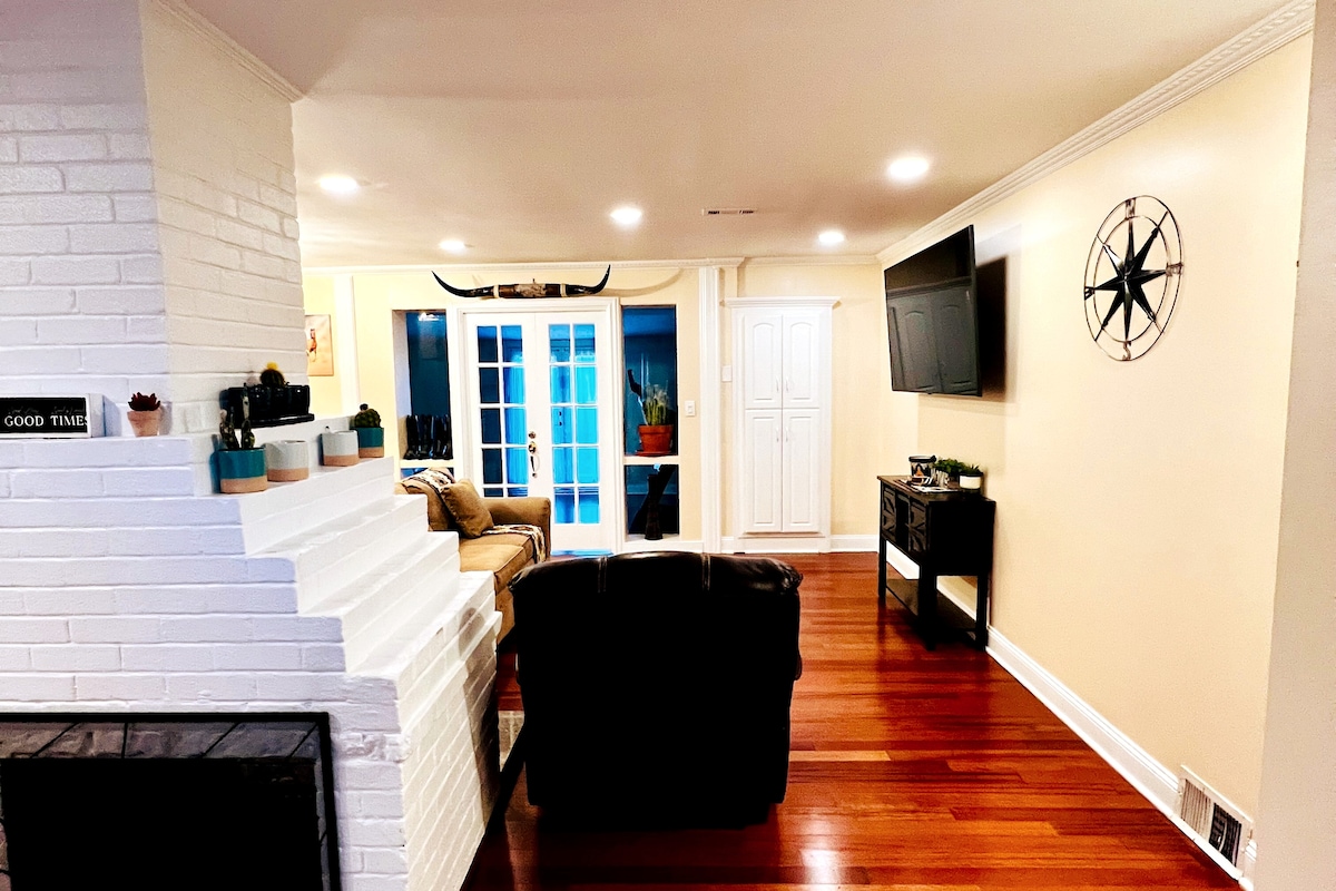 Múscail le fuaim álainn na n-éan ón bpáirc choillteach díreach taobh thiar den tearmann cluthar seo. Bain sult as an gcathaoir leictreach inchlaonta agus as an teilifíseán cliste 65” cois tine. Cistin oscailte shaincheaptha (gan oigheann), seomra leapa compordach le leaba bhanríona, seomra folctha iomlán príobháideach, seomra níocháin agus clós cúil fálaithe le haghaidh príobháideachta suaimhneach. Foirfe do lánúineacha nó do thaistealaithe gnó—cúpla nóiméad go Kingstowne, Ft. Belvoir, National Harbor, Seanbhaile Alexandria & Washington DC, le rochtain éasca ar an meitreo agus dhá spás páirceála sannta.