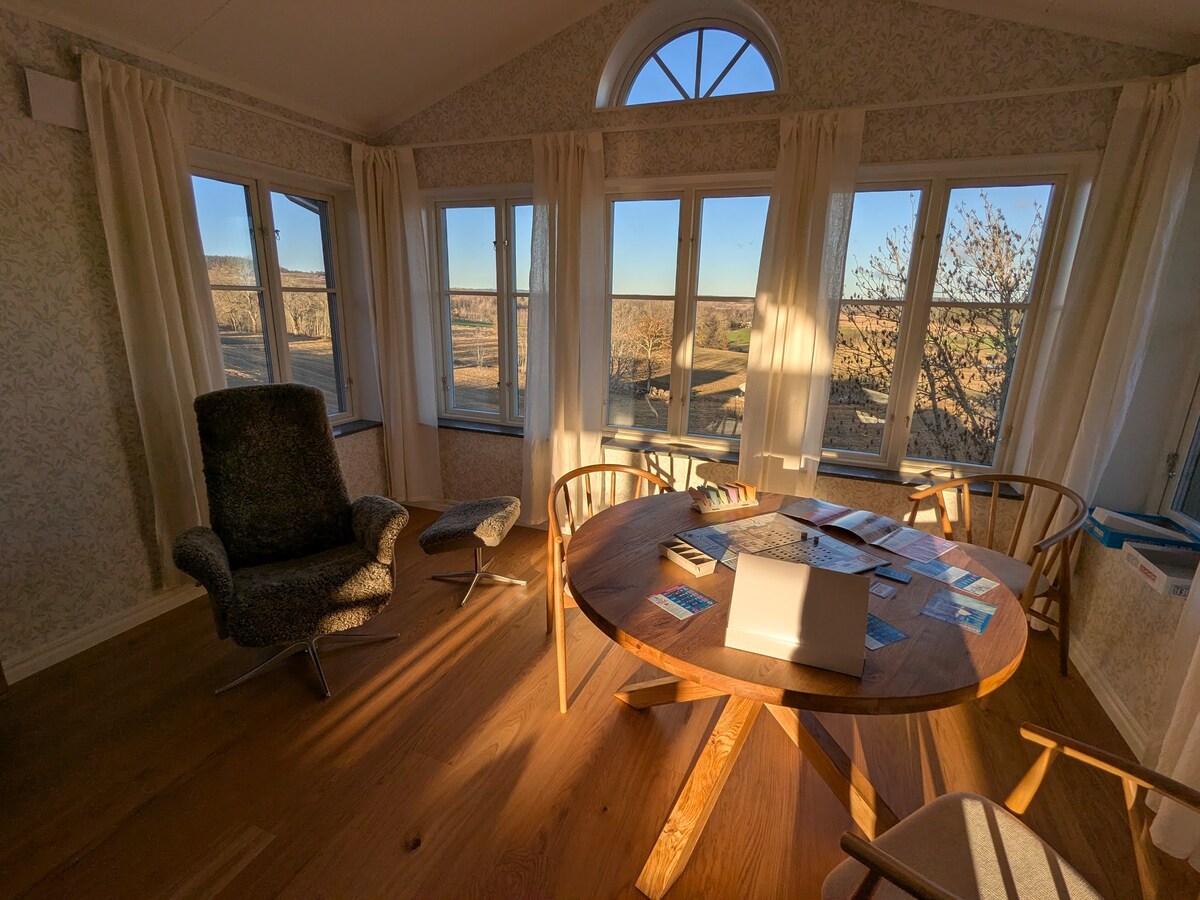Feirm sheanbhunaithe ina bhfuil teach ó 1606, a ndearnadh athchóiriú cúramach air go caighdeán nua-aimseartha. Tá tú i lár an Kvissle naturreservat. Deir aíonna go bhfuil an fanacht anseo iontach, álainn agus suaimhneach. Beidh tú i do chónaí gar don dúlra agus beidh tú in ann a bheith ag déanamh bolg le gréin ar an veireanda príobháideach, ag snámh sa loch, ag iasacht na mbád le haghaidh turas iascaireachta nó ag ligean cadhcanna ar cíos. Tá roinnt ainmhithe sóisialta ann freisin a bhfuil an-aird de dhíth orthu!