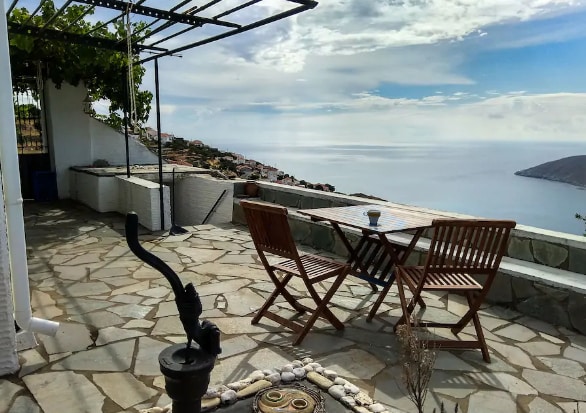 Cuirimid fáilte romhat chuig an teach beag bídeach seo,atá lonnaithe i sráidbhaile Aikia in Andros in aice leis an bhfoinse Sariza. Tá taobh istigh de sheomra leapa amháin agus seomra folctha 15sqm sa teach. Taobh amuigh tá cistin ann ina bhfuil na bunriachtanais go léir, clós le moirtéal stroighne agus tolg ionsuite. Rinneadh athchóiriú air in 2022 agus tá sé suite faoin gcosán a théann go dtí easanna Pythara. Timpeallaithe ag gairdíní le glasraí orgánacha agus ológa na gcéadta bliain d'aois.