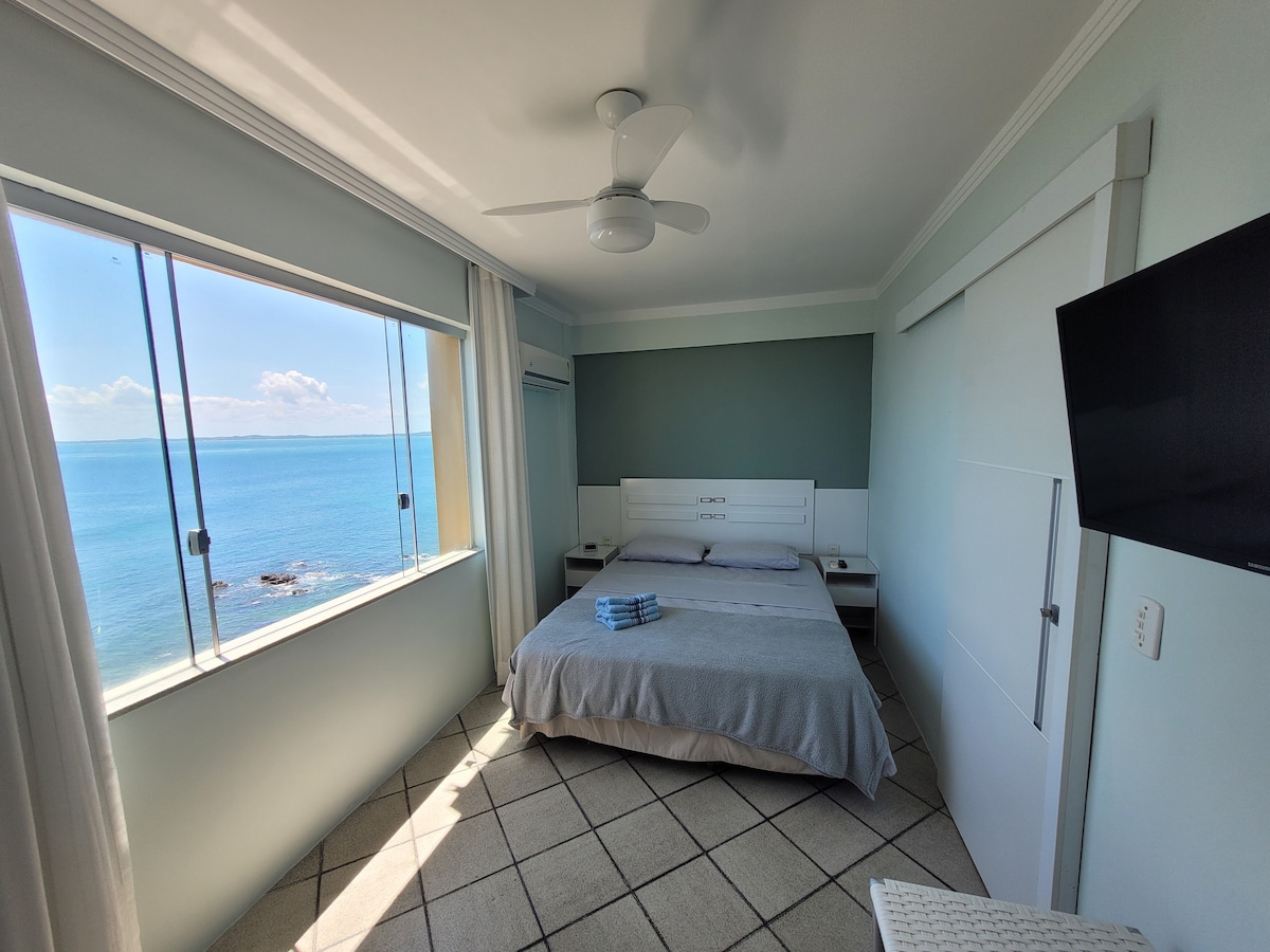 Apt in Barra (comharsanacht turasóireachta) de Salvador, radharc lánléargais ar an bhfarraige, comhthreomhar le ciorcad an Chairn. Siúlóid 2 nóiméad go Farol da Barra. Tá suas le 04 duine ina gcodladh sa seomra leapa agus sa seomra suí (leaba bhanríona agus seomra suí ina bhfuil leaba thoilg). Aerchóiriú agus teilifíseán cliste i ngach seomra. Cistin iomlán le sorn, oigheann, micreathonnán, cuisneoir, scagaire uisce, déantóir caife Nespresso agus gach uirlis Uathoibrithe ag Alexa 1 spás páirceála, díon le linn snámha agus ionad aclaíochta Neachtlann ar an mbunurlár GAN TOBAC