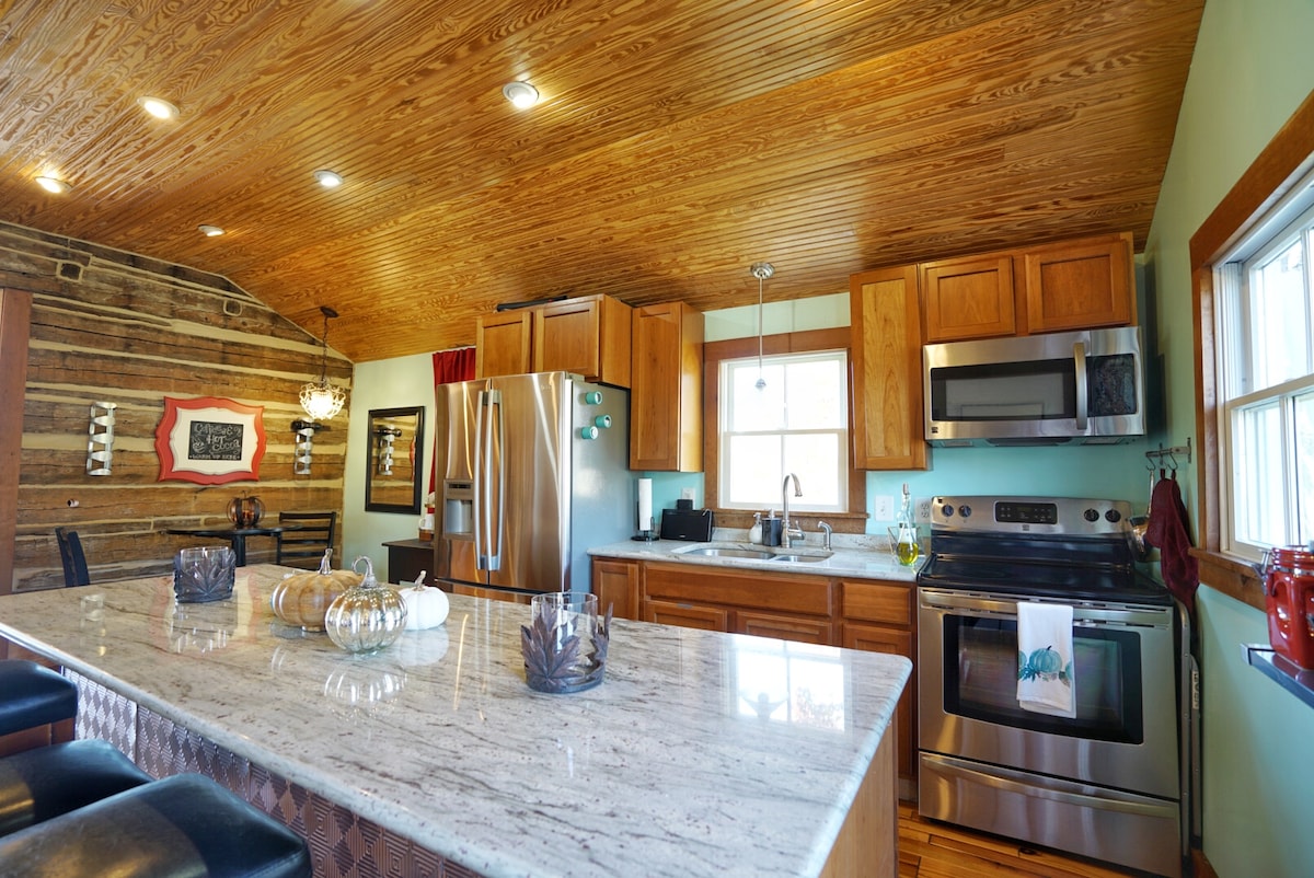 Éalaigh go "Shenandoah Twilight ," tearmann cábáin teolaí atá foirfe do lánúineacha nó do theaghlaigh bheaga i gcroílár Ghleann Shenandoah. Lig do scíth sa seomra suí teolaí le teilifíseán 50", teallach leictreach, agus suíocháin phluise. Scaoil do chruthaitheacht chócaireachta sa chistin atá feistithe go hiomlán, agus bí ag ithe laistigh nó ar an bpaitió, áit a bhfuil sunsets iontacha ag fanacht. Scaoil isteach an tobán te lasmuigh atá timpeallaithe ag áilleacht an dúlra, rud a fhágann gurb é an cábán seo an saoire shuaimhneach dheiridh.