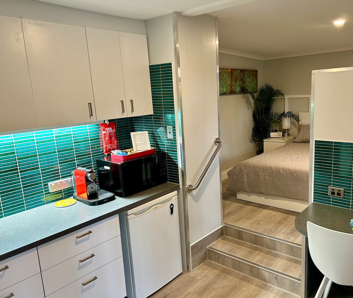 Stiúideo atá deartha go hailtireachta le rochtain láithreach ar chosáin traenach, tram agus rothar. In aice le hAerfort Melbourne. Cuireann Stiúideo na gnéithe is déanaí sa chistin agus sa seomra folctha atá deartha in Iodáilis, teilifís, cainteoirí B & O agus leaba chompordach ar mhéid na banríona. Tá an stiúideo suite thar an ngaráiste ar chúl na réadmhaoine. Tá a iontráil phríobháideach féin aige le fíniúin ghairdín cosanta timpeall an bhalcóin, rud a thugann príobháideacht ón bpríomhtheach. Níl aon chlúdaigh fuinneoige ar na fuinneoga. Stiúideo plean oscailte aige