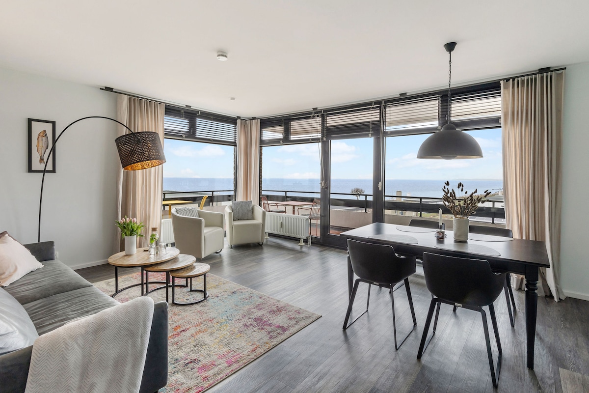 Árasán do suas le ceathrar a bhfuil radhairc farraige acu in Lemkenhafen Tugann an t - árasán leathscoite nua - athchóirithe Quartier Meerblick radharc ar an bhfarraige ón mbalcóin, ón seomra suí agus ón ngailearaí seomra leapa. Tá seomra leapa níos lú ann le 2 leaba shingil sa mhéid 90x200cm, 2 sheomra folctha (2 leithreas, 1 chithfholcadán siúil isteach), seomra leapa mór le leaba earraigh bosca compordach sa mhéid 180x200cm, cistin lánfheistithe agus balcóin le cathaoir trá.