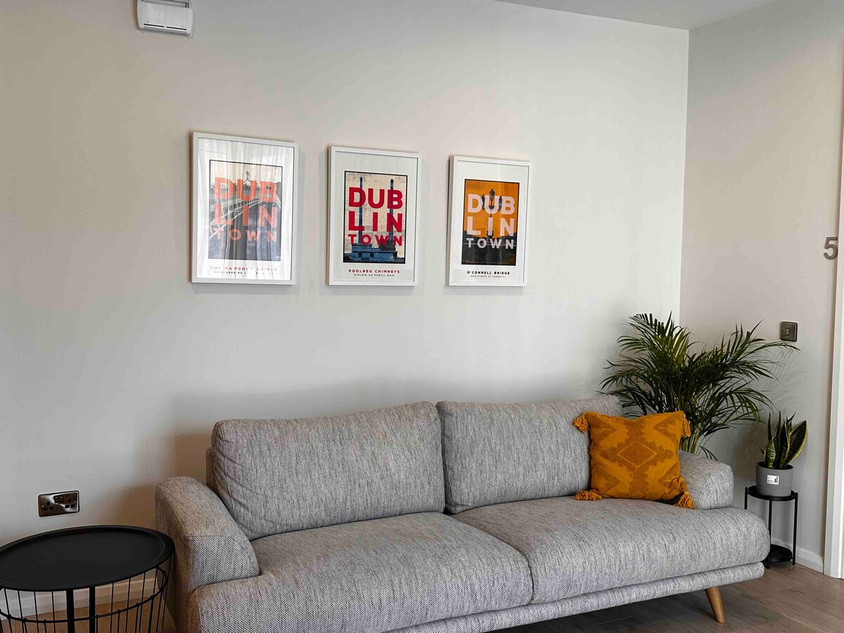 Árasán fairsing nua - aimseartha 55 méadar cearnach i gcomharsanacht bhríomhar atá lán le caiféanna, bialanna, beáir, siopaí agus sainchomharthaí cultúrtha. Tá ceantar Bharra an Teampaill agus nithe is díol spéise eile i lár chathair Bhaile Átha Cliath laistigh d'achar gearr siúil. Suite go háisiúil in aice le roghanna iompair phoiblí den scoth, lena n - áirítear tramanna, busanna agus traenacha. Tá stad bus an aerfoirt 10 nóiméad ar shiúl, rud a chinntíonn rochtain éasca ar an gcathair agus ón gcathair.