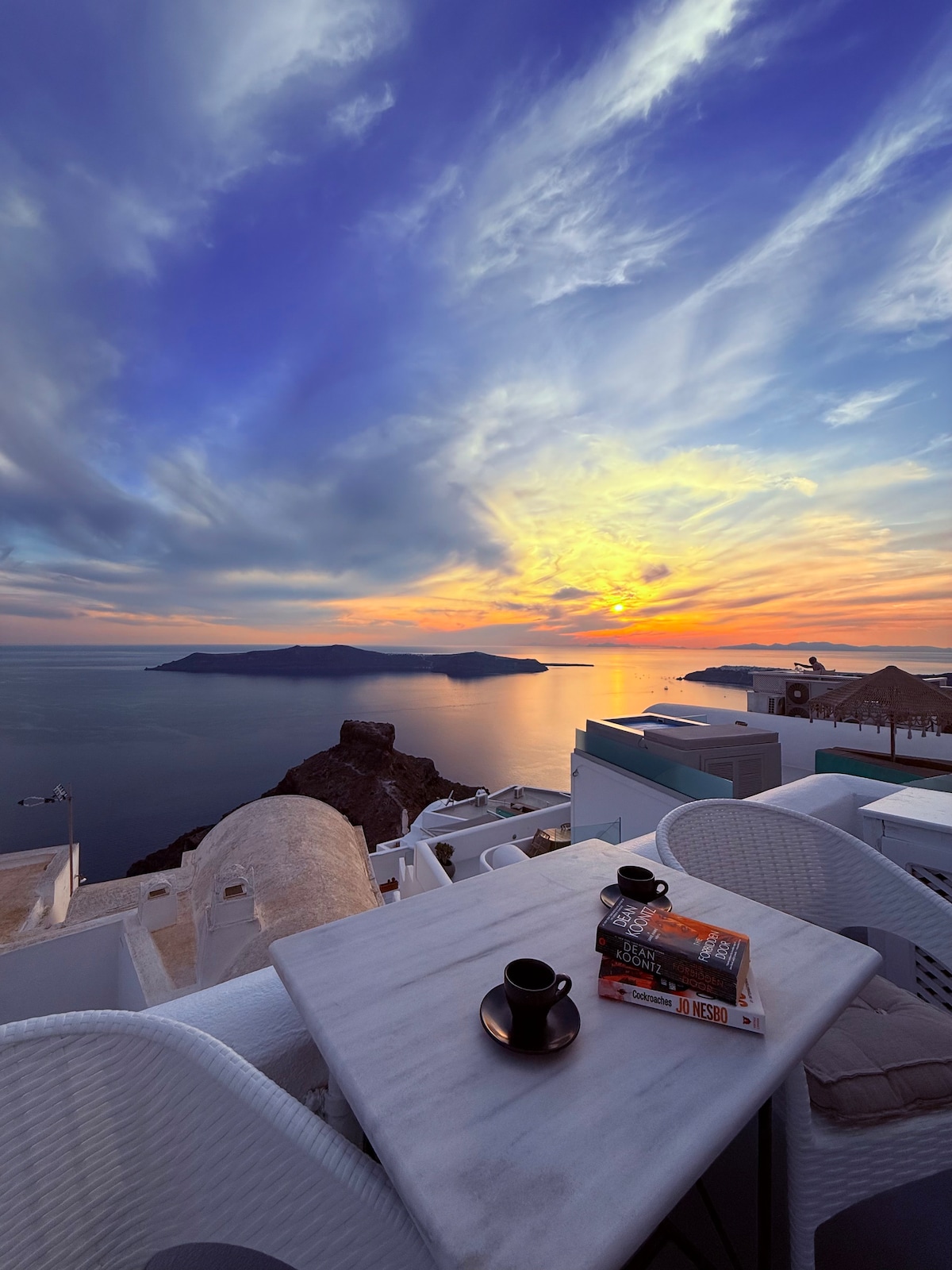 Villa Calderini atá suite in Imerovigli, cuireann sé beagnach 360 radharc ar an oileán ar fáil, ón mbolcán agus ón gcaldera go dtí an Santorini. uaidh ardán príobháideach le tobán te. Feistithe le cistin iomlán, seomra leapa sómasach agus seomra suí leis na háiseanna go léir chun fanacht dodhearmadta a chur ar fáil d'aíonna