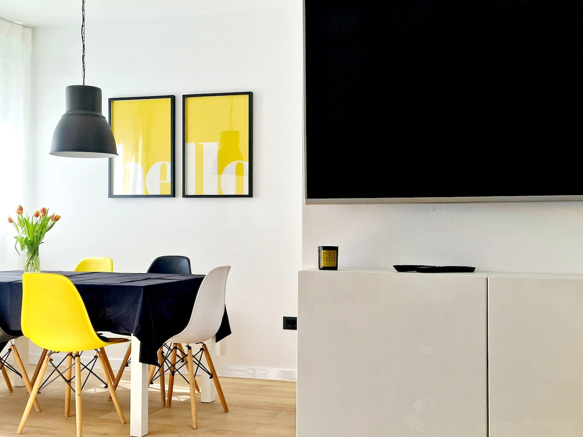 Árasán nua - aimseartha le hardán 70m2 agus seacláid. Fágann a shuíomh áisiúil go bhfuil sé oiriúnach chun Scoilt a iniúchadh! Achar siúil chuig - Trá Bacvice (5 nóiméad), trá Znjan (7 nóiméad), an Seanbhaile (10 -15 nóiméad). Páirceáil gharáiste saor in aisce ar fáil. Tá an t - árasán oiriúnach cibé acu is mian leat fuarú agus scíth a ligean i dtobán te agus tú ag féachaint ar radharc na farraige agus ar oileáin in aice láimhe, nó iniúchadh a dhéanamh ar Scoilt leis na leideanna daoine is fearr, nó cén fáth nach bhfuil an dá rud agat?