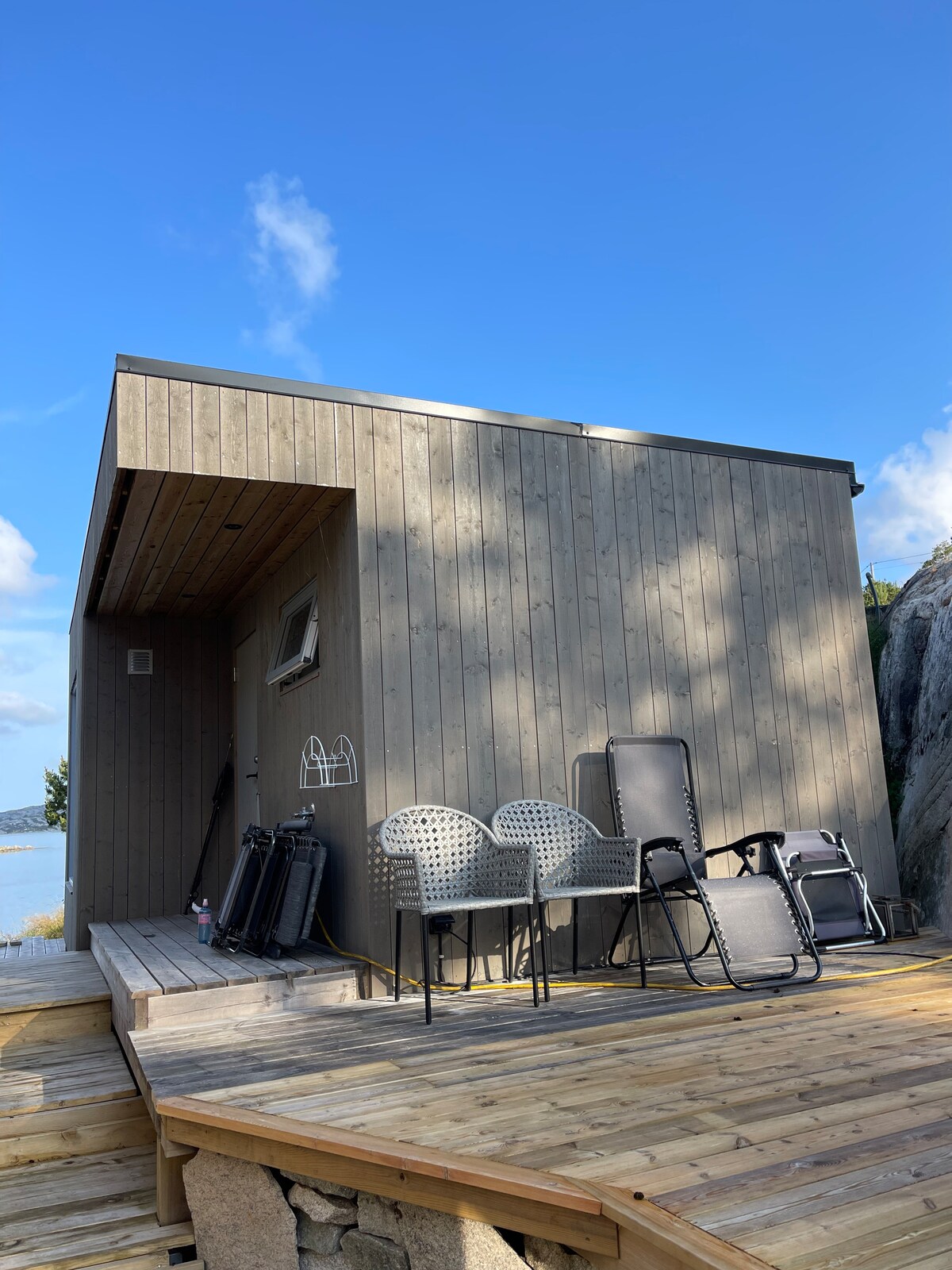 Árasán compordach ar imeall na farraige ag Tysnes.