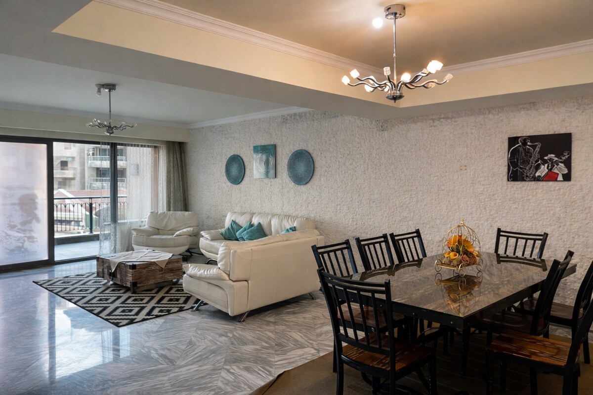 🏖️ Eolas faoin spás seo Dúisigh go gorm gan deireadh sa Mheánmhuir san árasán galánta cósta 2 sheomra leapa seo i gcroílár Alexandria. Cé go bhfuil sé suite ar an dara ró, tá radharc lánléargais go hiomlán gan bhac aige ar an bhfarraige — ní chuireann aon fhoirgnimh bac ar an léaslíne iontach. Le hardán gréine, taobh istigh geal, agus áit mhór mhaireachtála plean oscailte, is é do thearmann príobháideach cois farraige é, atá foirfe do theaghlaigh, do chairde, nó do ghrúpaí beaga atá ag lorg compoird, stíle agus luacha nach féidir a shárú.
