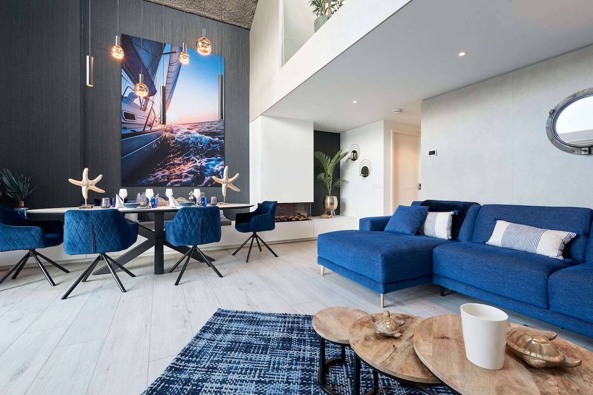 Luxury loft above the water. Welcome to the Nomad Lodge, a unique place to stay with a view of the water. Come and enjoy all the beautiful things we have to offer. Two fully-fledged rooms with double king-size beds are waiting for you, in the lounge with fireplace and balcony with glass balustrade you can enjoy the passing boats.