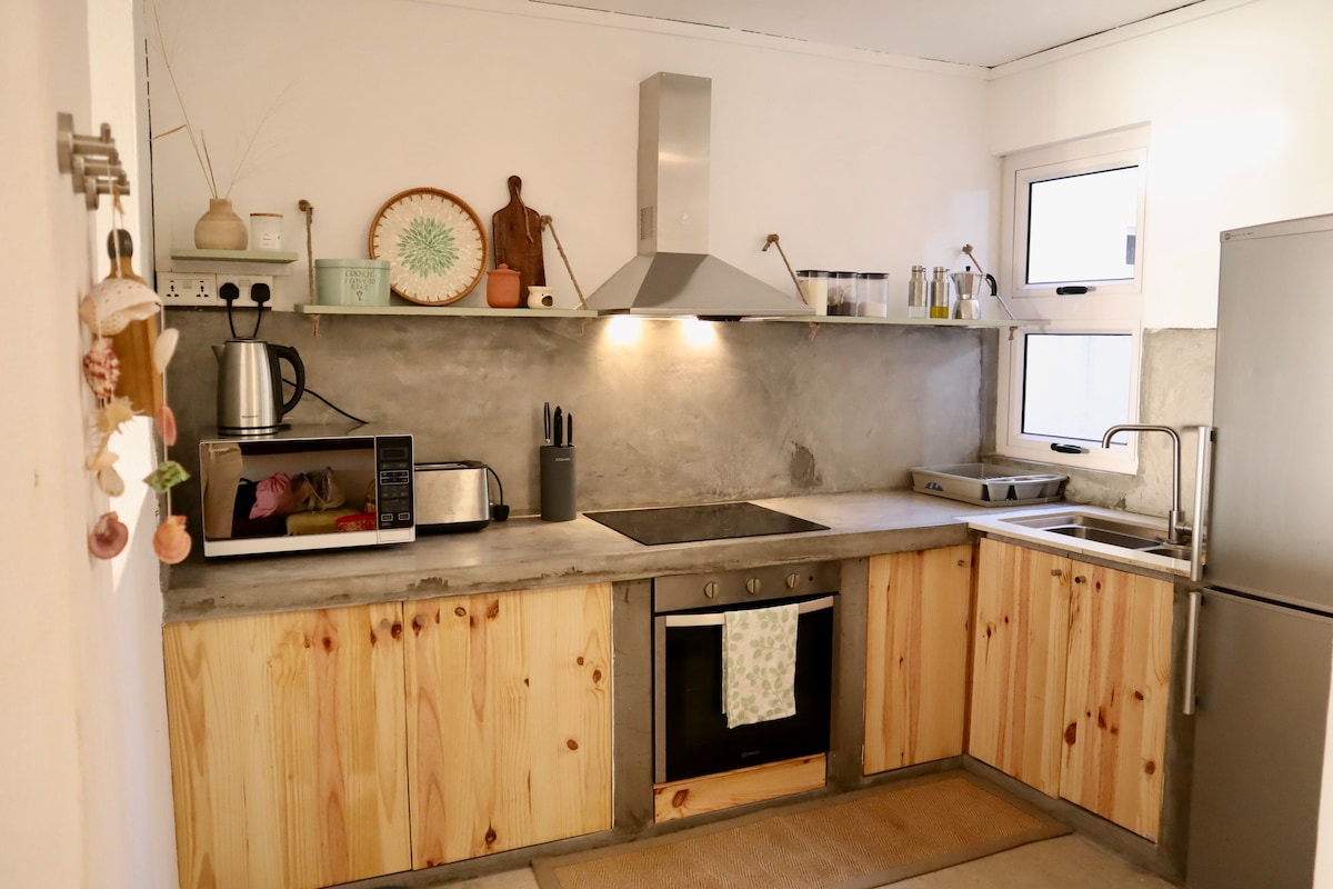Bain sult as tearmann cladaigh galánta ina bhfuil atmaisféar suaimhneach agus radharc álainn lánléargais ar an bhfarraige. Tá cistin lánfheistithe, áit mhaireachtála the agus ghalánta, leaba bhanríona ar a bhfuil línéadach tí bog agus seomra folctha iontach sa stiúideo nua-aimseartha seo. Is é buaicphointe an spáis an balcóin phríobháideach óna bhfuil radharc ar an bhfarraige, áit ar féidir leat do scíth a ligean, do scíth a dhéanamh, agus an luí gréine órga thar an aigéan a fheiceáil. Foirfe do lánúineacha agus do thaistealaithe aonair atá ag lorg compoird, stíle agus fanachta shuaimhneach cois farraige.