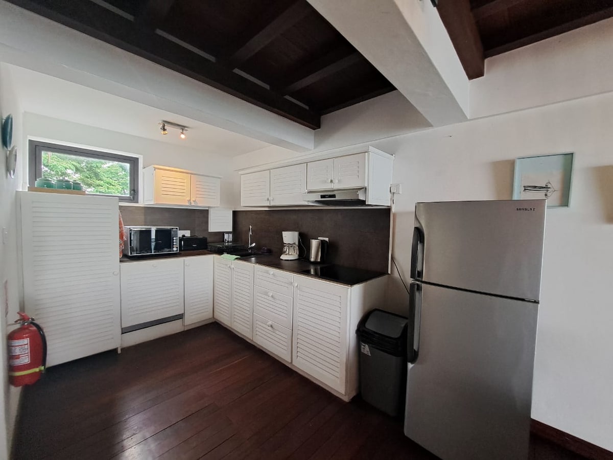 Níl an trá ach céimeanna ar shiúl! Suite ag Flic en Flac, tá an t-árasán suite díreach trasna an bhóthair ón gcladach, áit ar féidir leat taitneamh a bhaint as radhairc iontacha ar an aigéan, uiscí glana, gaineamh bán agus luí gréine draíochta gach lá. Tá 2 sheomra leapa fhairsinge ann lena seomra folctha/leithreas féin, cistin lánfheistithe a osclaíonn ar an seomra suí agus radharc díreach ar an trá. Tá aerchóiritheoir i ngach seomra leapa agus sa seomra suí. Tá ceamaraí slándála in áiteanna poiblí, linn snámha agus páirceáil phríobháideach clúdaithe san áireamh.