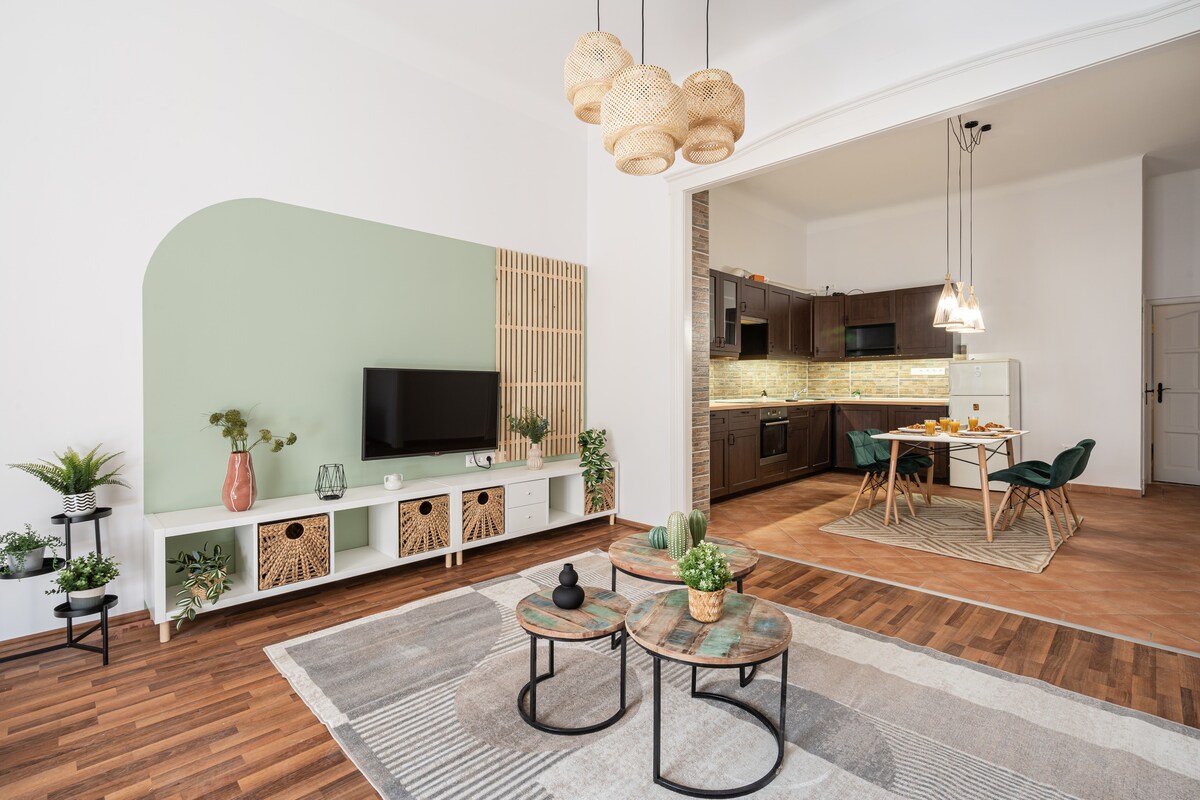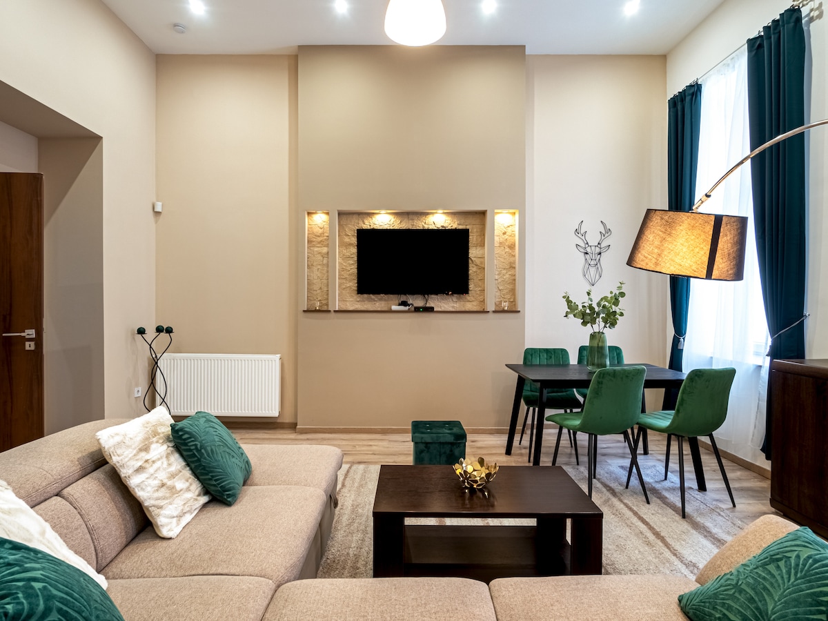 Bhí mo theach álainn i mBúdaipeist maisithe ag dearthóir intí Ungárach a bhfuil duaiseanna buaite aige agus é mar aidhm aige timpeallacht álainn shuaimhneach a chruthú. Le siopaí caife fuinniúla agus bialanna iontacha timpeall an chúinne, beidh cultúr agus siamsaíocht oíche ar do mhéara agat. Agus ós rud é go bhfuil sé suite ar shráid chiúin le crainn nach bhfuil ach céimeanna ar shiúl ón Danóib, beidh tú buíoch freisin as a shuaimhneas nuair is mian leat éalú ó fhuadar agus ó fhuadar na cathrach.