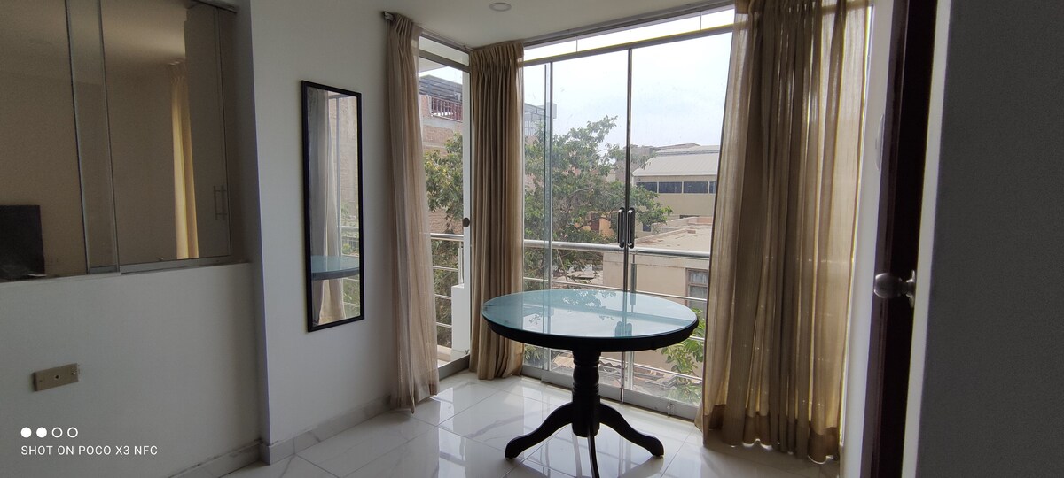 Bain sult as ĂĄrasĂĄn nua-aimseartha, cluthar agus lĂĄnfheistithe ina mbeidh tĂș ar do shuaimhneas. Foirfe do theaghlaigh, do thurais ghnĂł, nĂł le cairde. đ Suite ar an 2Ăș hurlĂĄr laistigh de limistĂ©ar uirbeach straitĂ©iseach in Trujillo, nĂłimĂ©ad Ăł ionaid siopadĂłireachta, lĂĄr na cathrach stairiĂșil, Huanchaco agus an t-aerfort. Anseo ligfidh tĂș do scĂth i spĂĄs ciĂșin, prĂobhĂĄideach agus sĂĄbhĂĄilte ina bhfuil timpeallachtaĂ foirfe, troscĂĄn nua, soilsiĂș te agus sonraĂ atĂĄ deartha le haghaidh fanacht compordach praiticiĂșil.