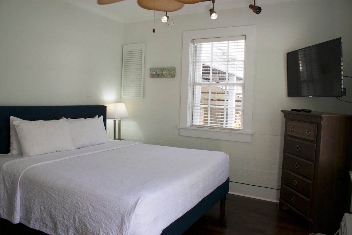 Ceann de 6 sheomra ag Andrews Inn! Comharsa le Teach Hemingway, seomra maisithe go hálainn le seomra folctha príobháideach, aerchóiriú, síleáil agus gaothrán túir, tocht NEACHTAR nua de mhéid banríona, Teilifís Chliste le Netflix, Wi - Fi saor in aisce, cuisneoir sa seomra. Ní mór d'aíonna atá ag fanacht anseo a bheith in ann eitilt shingil staighre a dhreapadh. Is Teach Aoi a oibríonn le húinéir muid, áit a mothóidh tú go bhfuil tú álainn fáilteach agus ina atmaisféar suaimhneach. San áireamh sa phraghas: bricfeasta, uair an chloig sona, rothair.